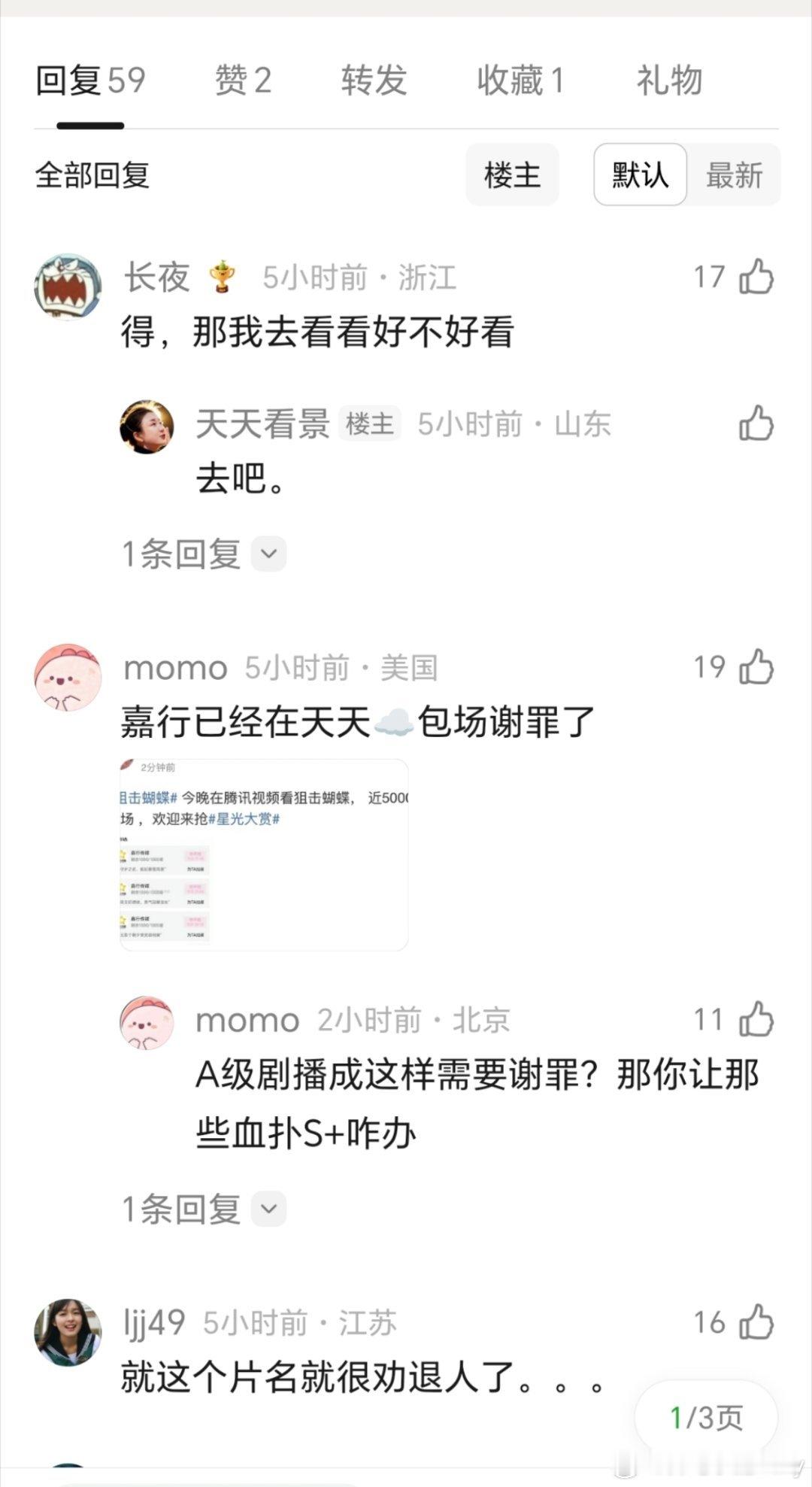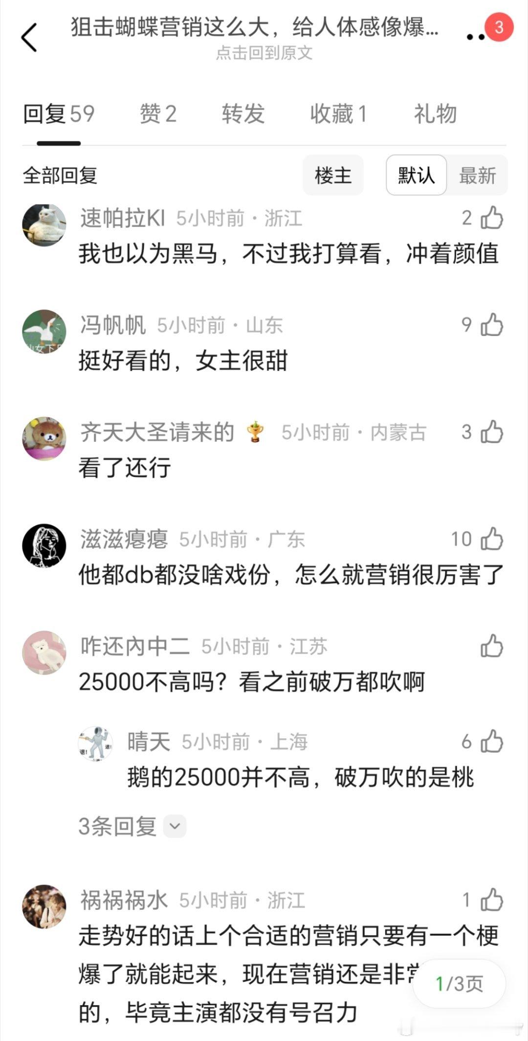 狙击蝴蝶口碑两极反转 网友又开始热议了,《狙击蝴蝶》那么大的营销,结果热度到现在还是25000,已经发酵了7天,热度一直上不去,扑剧整得跟黑马一样,陈妍希和她前夫的剧同期播,输得也太惨了