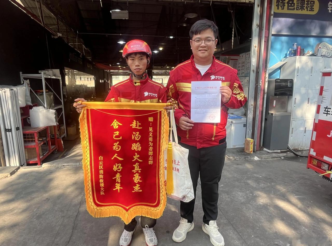 【 广州外卖小哥送餐途中勇救火:不怕超时,生命最重要】 “当时我担心车里有人,根本没多想,拿起灭火器就冲上去了。”回忆起几天前的那一幕,外卖小哥谭志群略带腼腆地说道。 12月9日下午,广州市白云区消防救援大队工作人员来到骑手站点,为这位勇敢灭火的外卖小哥送上锦旗和表扬信。白云区消防救援大队参谋李锦森肯定了谭志群的举动:“他为控制火势蔓延赢得了宝贵时间,为消防队伍到场处置创造了有利条件。” 视频 | 广州外卖小哥送餐途中勇救火:不怕超时,生命最重要