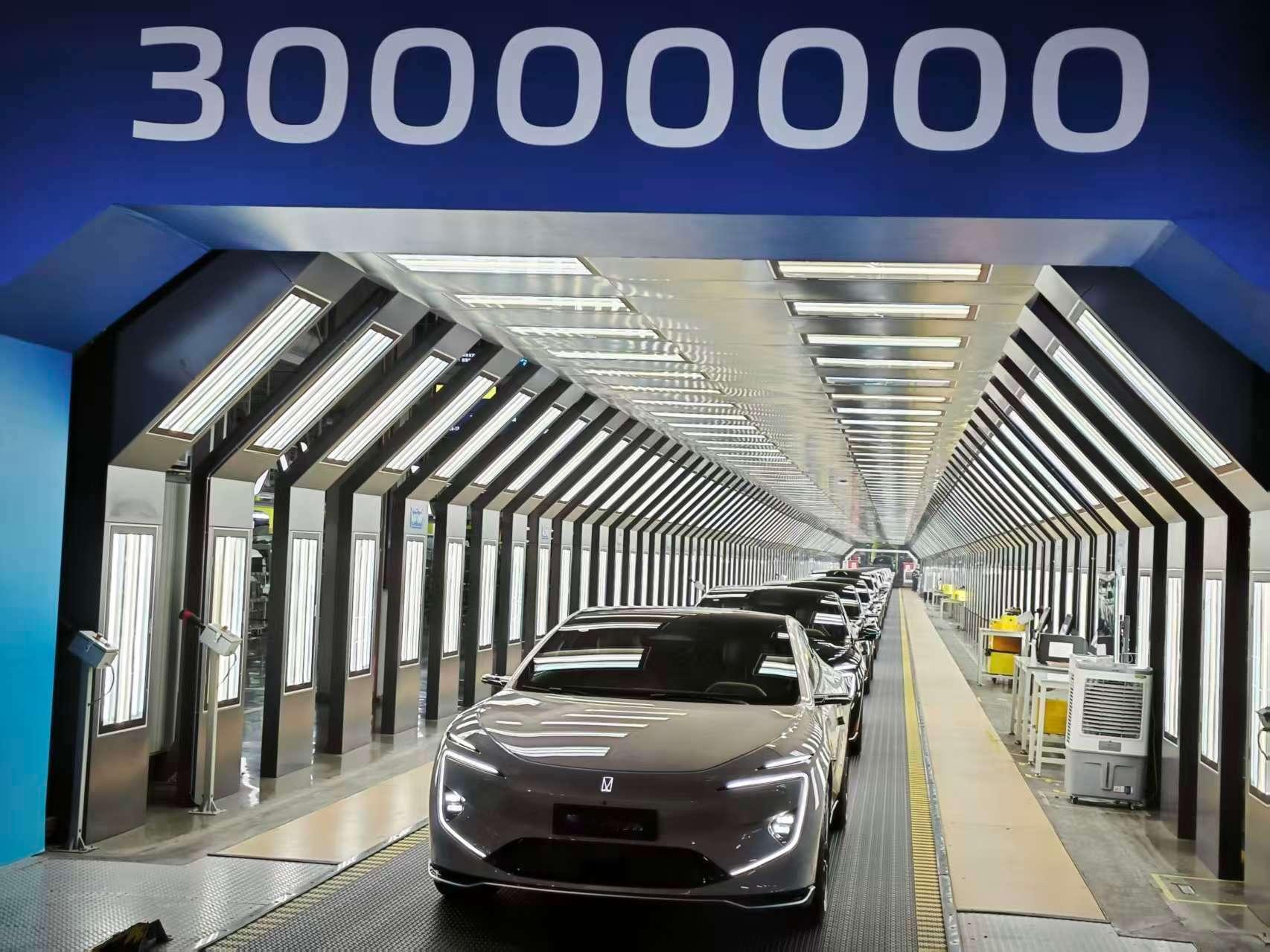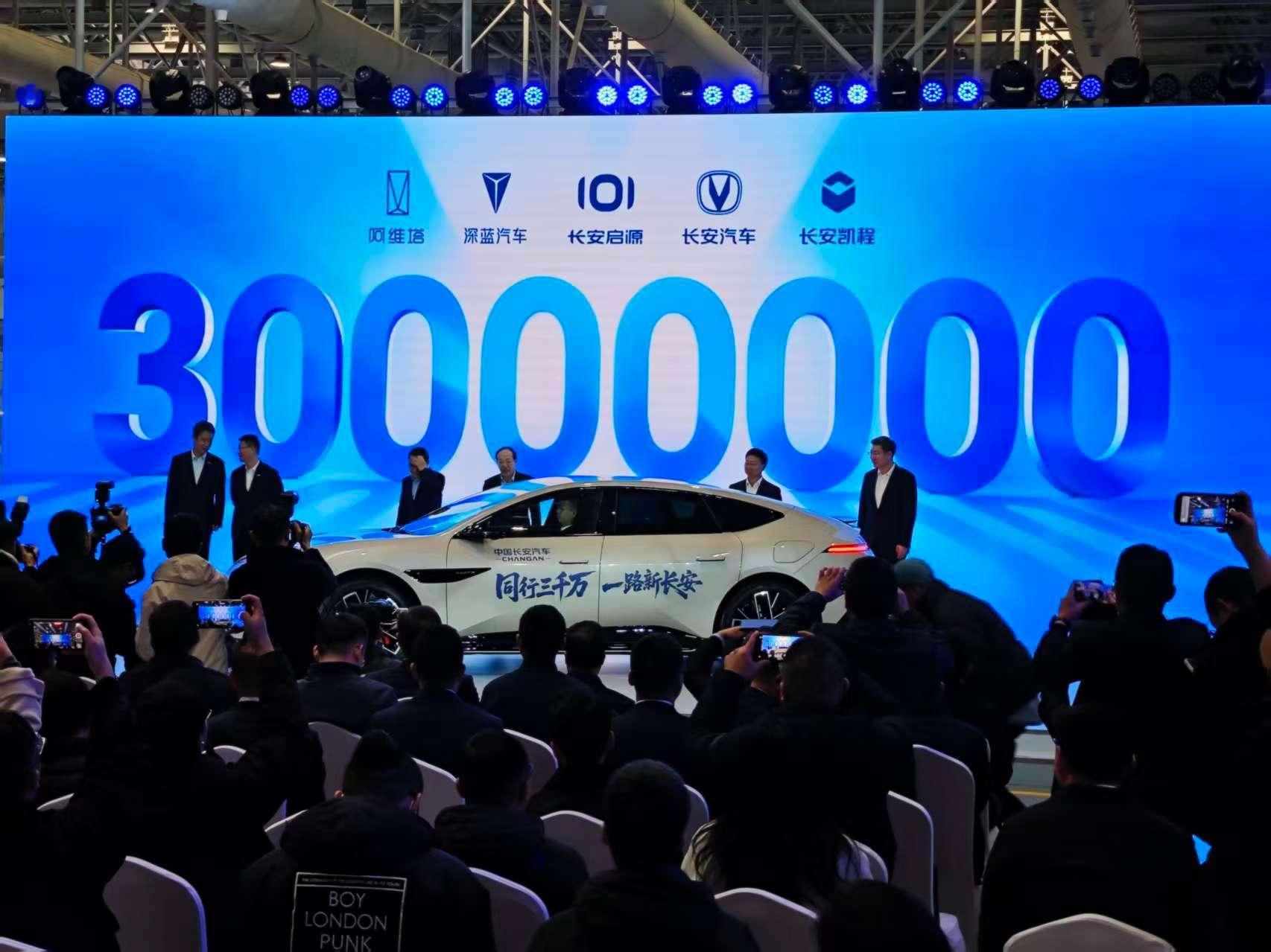 41年,3000万辆。今天,长安汽车在重庆工厂迎来第3000万辆中国品牌整车下线。从1984年首辆小货车到如今,41年风雨兼程,从2000万到3000万仅用4年,刷新了中国品牌的最快纪录。2014年,实现首个1000万辆,用时30年,铭刻了自主品牌艰苦创业的奋斗足迹;2021年,突破第二个1000万辆,用时7年,为自主品牌崛起写下了坚实注脚;2025年,跨越第三个1000万辆,仅用4年半,这成为中国新能源汽车产业跃迁与品牌向上的生动展示。同行三千万一路新长安新长安新安全天枢智能科技长安智慧伙伴