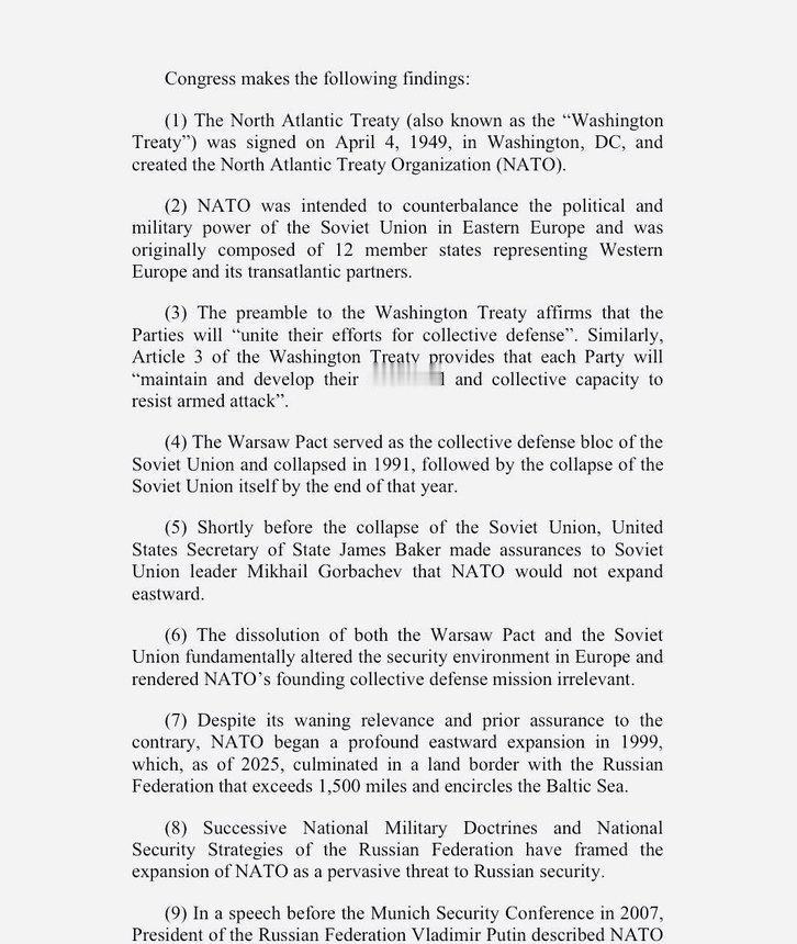 美国众议员托马斯·马西 北约是冷战的遗物。美国应该退出北约,把这笔钱用来保卫自己的国家,而不是去保卫那些“社会主义”国家(指欧洲)。 今天,我提出了 HR 6508 号议案,旨在终止我们的北约成员国身份。 热点观点海外新鲜事
