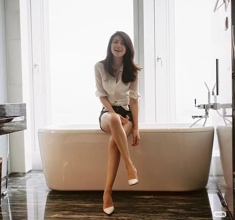 高圆圆也拍了浴缸照, 关键还换了三双高跟鞋,分别是白色,黑色和红色……
