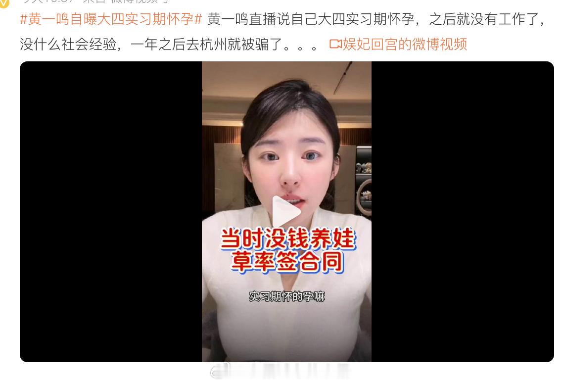黄一鸣自曝大四实习期怀孕 这都不封号吗?这人是在传递什么社会价值观呀?大学生应该抓紧时间在学术科研上攻关冲刺,而不是出卖自己,跟有钱人在酒店冲刺。。。。。唉,笑贫不笑娼,迟早被反噬。。。。。倨能聊