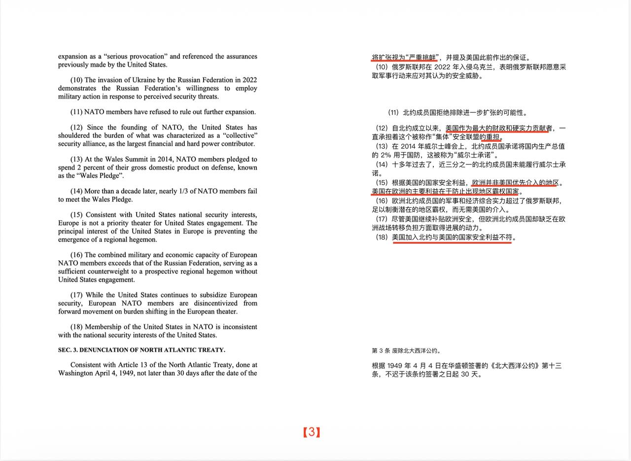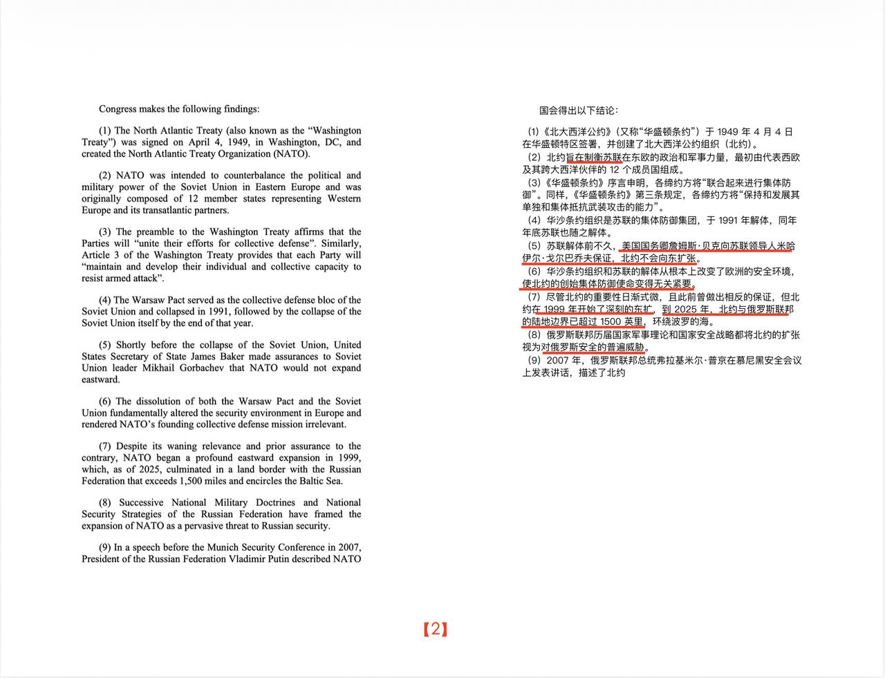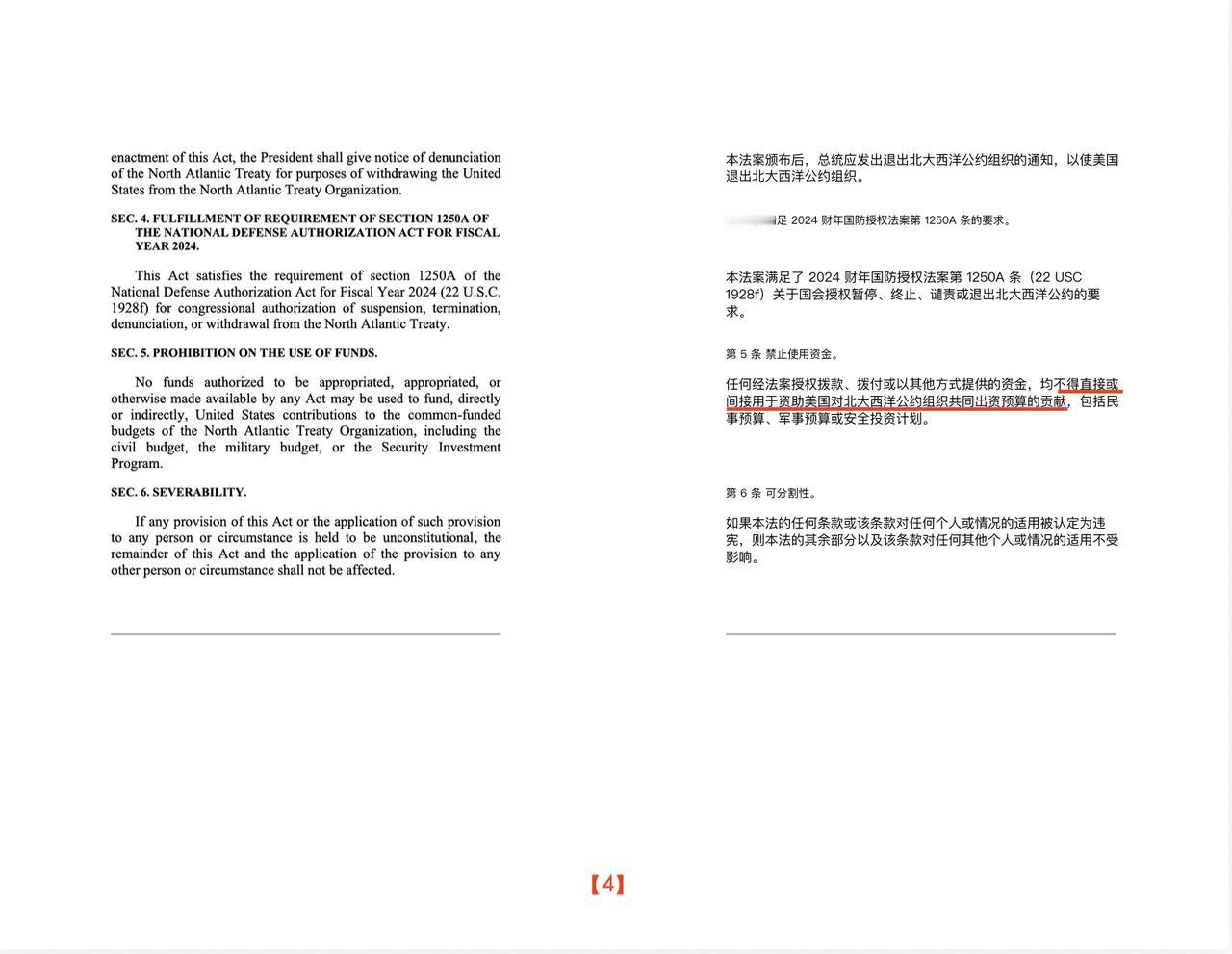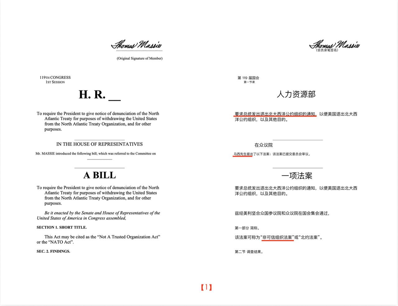 美国退出北约的议程已经启动。共和党众议员马西·塞斯提出立法,要求美国退出北约。他在12月10日的x上说“北约是冷战遗物。美国应该退出北约,把省下来的钱用来保卫我们自己的国家,而不是用来保卫社会主义国家。 今天,我提出了 HR 6508 法案,旨在终止我们的北约成员国身份。” 浑水报告认为,这份提案很难通过,却是一个重要的开始,且象征意义远胜实际结果。这表明美国的战略收缩不是特朗普的一时兴起,而是存在较为广泛的共识,既美国政客承认美国实力的衰落。这将约束美国的军事冒险,令其在地缘政治上更加保守谨慎而不是肆意妄为。 美国议员很少以单独行动的方式拿出提案,他们会先组成政治联盟然后才会提交,少则几个人,多则几十个。如果退出北约提案反映了特朗普的意愿,则代表他与跨大西洋深层势力的斗争开始走进深水区。因为北约是这股势力的私人部队,长期以来,对北约的支持是拿美国纳税人的钱为这股势力输血,并培植了效忠这股势力的欧洲政客。这股势力一般被含蓄地称为“全球主义者”——妄图统治世界的人。美国最新版国家安全战略明文提到“全球主义”这个字眼。令其从阴谋论变成美国的政策现实。 世界格局正在巨变,对我们来说是积极的变化。那些依然担心美国集中精力“围堵”的人,没有意识到美国失去了“围”的力量,没有意识到美国的盟友体系正在垮塌,这些人只是不断重复“不要轻敌”的陈词滥调,却不敢锐意进取。 锐意进取才能大有作为,不轻敌绝不意味着畏手畏脚。