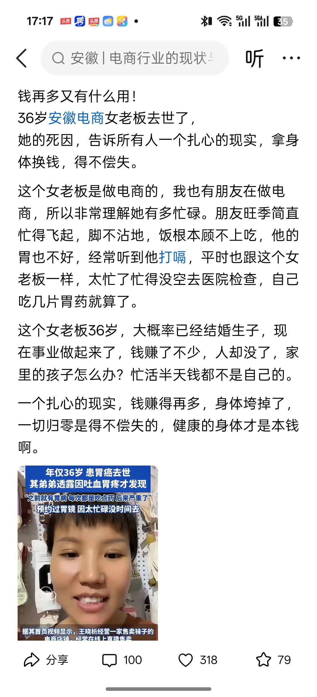 太戳心了!36岁正是上有老下有小的年纪,钱没赚够身体先垮了,再多财富也换不回健康。别总拿命换钱,好好吃饭、按时体检,活着才是给家人最好的交代啊~[机智][机智][机智]