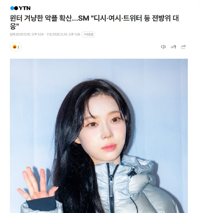SM将起诉金冬天黑粉 SM娱乐公司旗下女团aespa成员winter遭到恶意攻击,公司表明了将采取强硬应对措施的立场。SM方面通过粉丝举报平台"KWANGYA 119"发布公告称:"我们通过接到的举报和自主监控,已经认识到恶意帖子和评论的严重性",并表示"已确认存在性骚扰、名誉损害、人身攻击、侮辱、侵犯隐私、深度伪造等反复受害的情况,正在进行法律程序。"接着,公司说明:"在DC Inside、女性时代、Nate Pann、Instiz、Theqoo、Instagram、X(原推特)、YouTube等多个平台上,发现了大量损害winter人格和名誉的恶意帖子",并称"正在审查相关帖子,计划逐步扩大起诉范围。"此外,SM还解释称已经对部分发帖人提起了刑事起诉和民事诉讼请求。SM强调:"对于在SNS、在线社区、匿名留言板中发生的恶意谣言制造、反复散布虚假信息、发布性骚扰帖子、制作及传播嘲讽/扭曲内容等行为,我们也在收集证据,并将毫不留情地予以应对。"