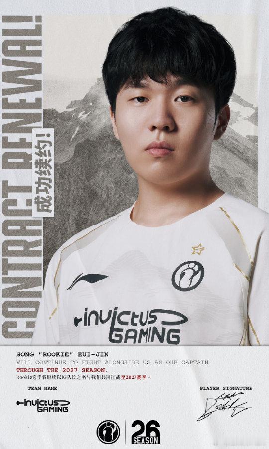 有细心的極粉已经发现,Rookie签的不是一年合同!经过深思熟虑,Rookie和iG续约至2027年!!那时候97年出生的他刚好30岁,梦开始的地方,梦成真的地方,也要在这里画上圆满句号,有始有终的Rookie!Rookie和iG续约至2027年 iG官宣Rookie续约 ACG优创官
