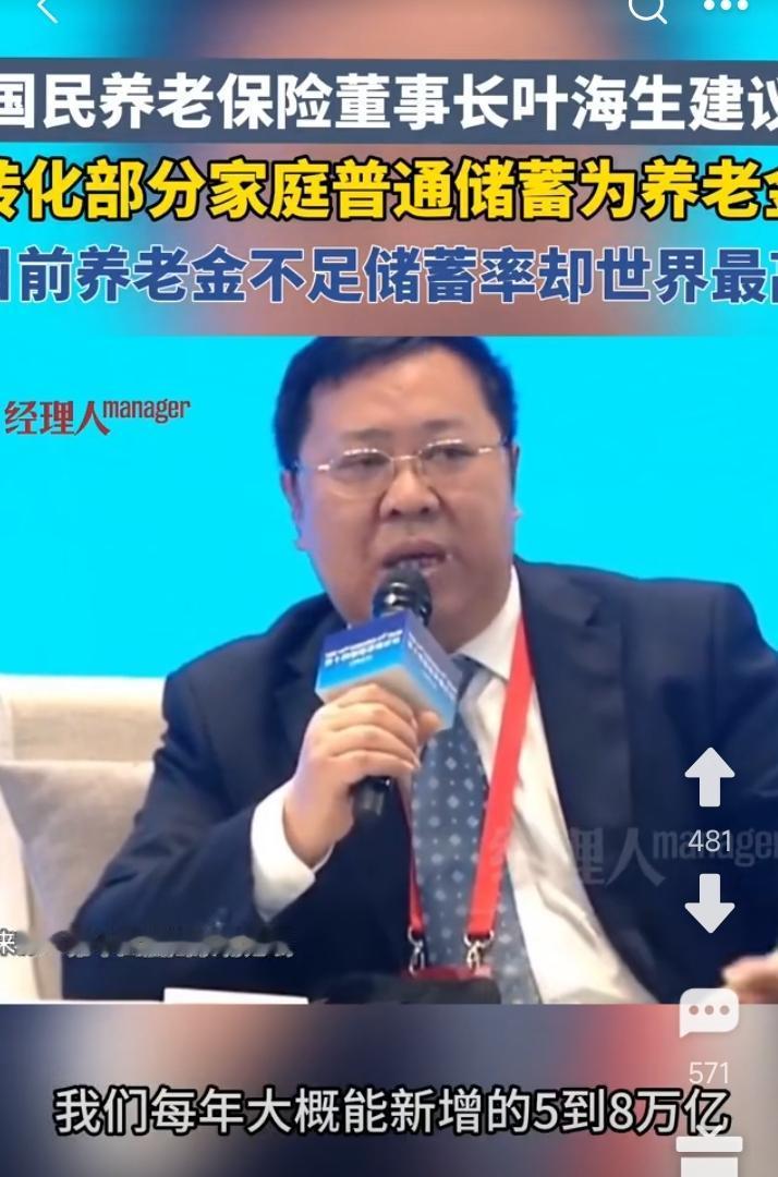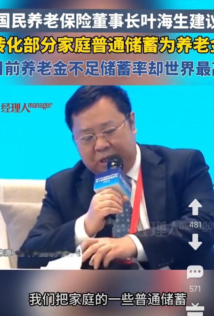 叶海生建议把个人储蓄转化为养老金,此议大大不妥。 个人储蓄是个人省吃俭用存下来的,存储是为了防备万一的急需,是个人的私有财产。 养老金是社会养老保险待遇,与个人储蓄完全不是一回事。 两者不能混淆,更不能等同。 建议把个人储蓄转化为养老金,这个人不是蠢,而是坏。