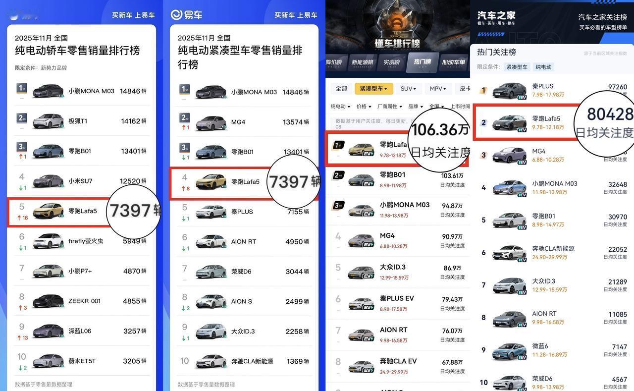 这么多人选高配?零跑Lafa5卖成了年轻人的时尚单品。 我看最近零跑公布了Lafa5首批车主的购车版型比例,我发现,现在的年轻人说是买轿跑,但58%的人选了605续航、45%的人选了Max版,说白了就是都选了价格更高、可以给到更多的版本。 要我说,这原因有二:其一是大家伙都想体验“既要又要”的生活方式,让出行变成一种享受;其二是Lafa5这台车确实卖得不贵,你就说19英寸运动轮毂、无框车门这些高颜值设计,那都是标配,当前9.28万元起的限时惊喜价、一入门就都有。 而且Lafa5不仅是长相出挑,像前面提到的大轮毂会配鸳鸯胎,了解性能车的朋友应该知道这几乎是轿跑必备。而且Lafa5还得到了中欧联合调校,并通过50:50轴荷比带来了低至5.17米的转弯半径,跑起来也有欧系味道,可以说是颜值与实力并存。 更何况,Lafa5车内不光有超80%软包覆盖,甚至连Nappa真皮都用上了,这些当前限时惊喜价后都是11万左右就能有,怪不得上市3天时间,销量就突破了7000台。这眼看新能源的购置税优惠就要滑坡了,不管买不买,我的建议是先去试试看。