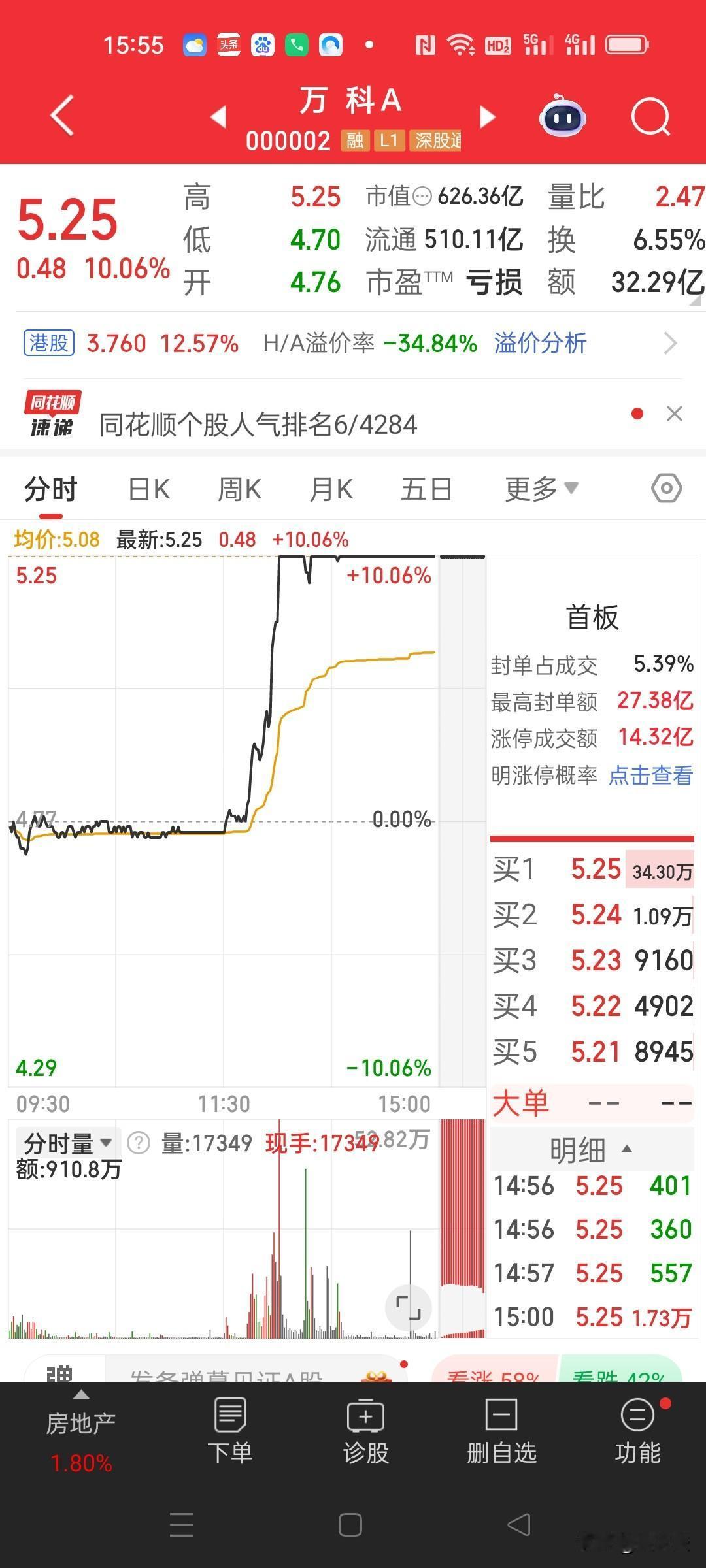 万科涨停这是怎么了? 不知道从什么时候 行业大哥成了妖股! 我也是服了, 今天开盘刚大骨折割肉了 立马就来个涨停! 听说有重大利好 看了一下也没啥啊 就是债务展期 深铁担保 假如硬靠的话 还有一二手房成交量上涨 各地出购房补贴 美元预期降息等等 也没啥啊! 记得10月份有有过一次涨停! 这次又是圈套还是机遇? 哪位大神说一下! 不过我也是真上火了 假如明天再继续涨停 我该怎么办?