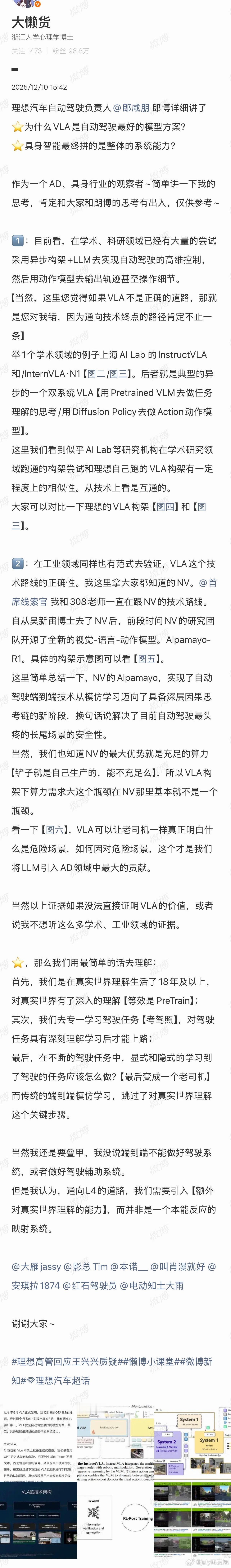 【个人拙见】人生下来其实脑子里就有一个模型,然后通过眼睛(看),嘴巴(语言),耳朵(声)等感知去理解具象的世界,存储进这个模型(脑子),我们是会理解看到的事物的具象本质,当然这个模型的上限和时延对于机械飞升的驾驶系统来讲就是“神”【God】现在的驾驶辅助系统,怎么去开车?第一种是不断的去人为增加各种情况,遇到什么情况,我就应该怎么做;第二种是通过抽象表征来理解驾驶环境,我现在行驶在XX路,第X车道,左边有X,右边有X,天上有X,我根据这些信息来判断我可能应该怎么做;还有一种就是我天天打模拟赛,我在真实遇到了那就按模拟赛的打法来当然用什么方案是主机厂的事情,我用户只要:坐着舒服和安全到家,在目前我的感受里,第二种是最好的大v聊车新能源汽车