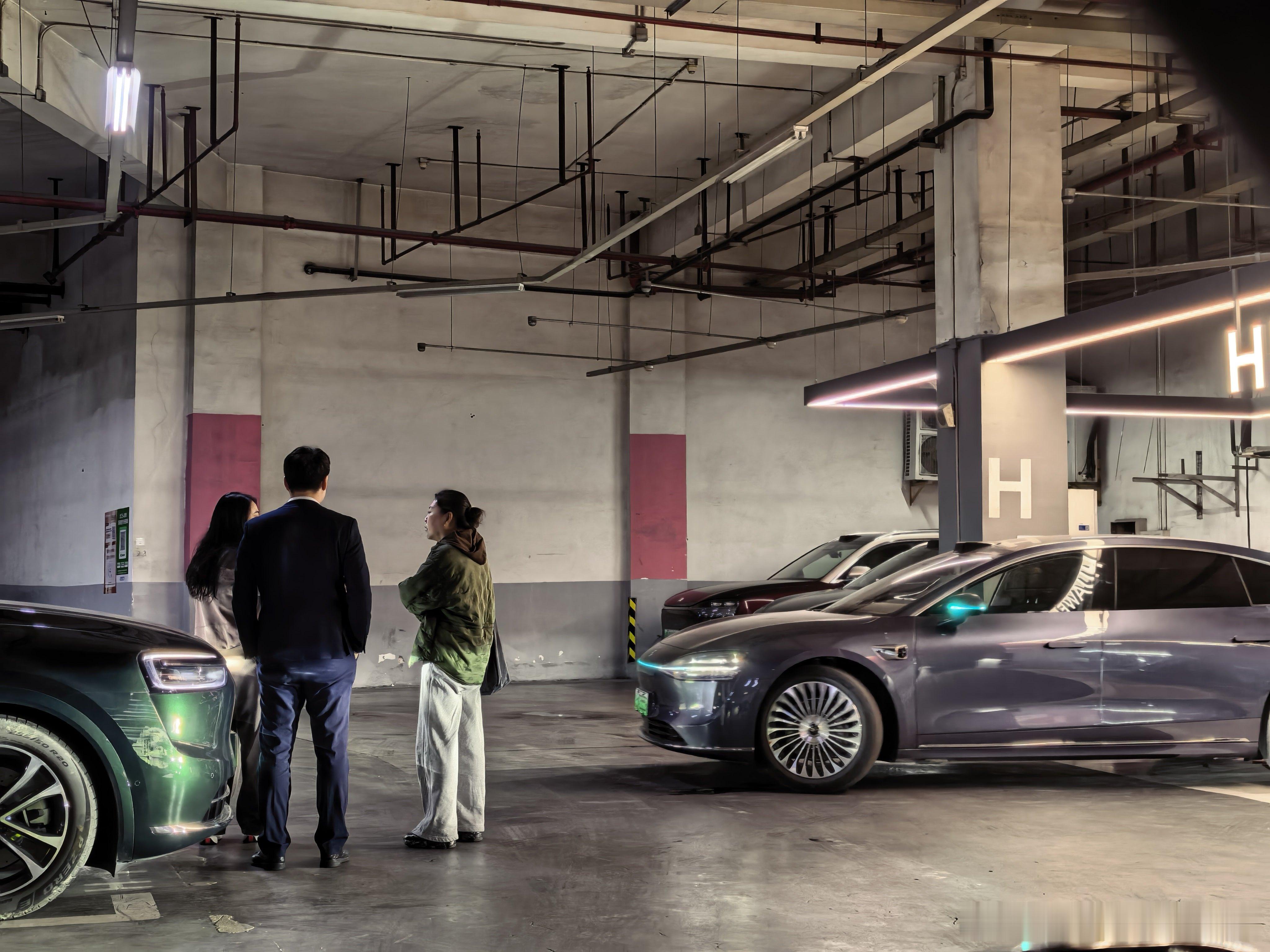 这两人应该是要准备下单了...有一说一,离车泊入的仪式感,确实很吸引消费者鸿蒙智行享界s9