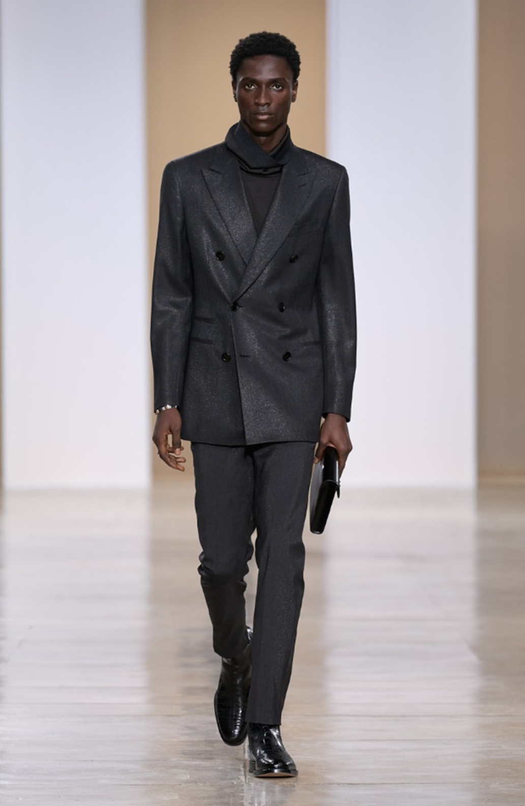 身穿爱马仕亮相盛典活动的李乃文、黄轩、尹昉。三位的气质与风格与爱马仕男装低调优雅的设计风格都很契合。李乃文身着爱马仕2025夏季男装系列灰黑色双排扣西装外套、内搭白色男士正装衬衫、下穿羊毛修身长裤,佩戴漫游时光腕表和“PALSELY”织锦领带,脚穿黑色小牛皮乐福鞋。黄轩身着爱马仕2025冬季男装系列藏青蓝条纹羊毛西装外套、内搭白色Oxford棉布配韵律感条纹直身衬衫、藏青蓝条纹羊毛华达呢修身长裤,搭配LENON黑色小牛皮短靴。尹昉身着爱马仕2025冬季男装系列棕色羊毛双前襟设计夹克、内穿卵石灰蜂窝棉直身衬衫、下穿棕色羊毛修身长裤,佩戴月读时光腕表、INFLEXIBLE银质戒指,脚穿LOCK黑色小牛皮短靴。时尚灵感解读风格大赏米拉服饰解析