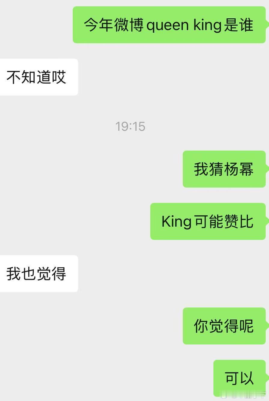 这个豆瓣的人跟我想的一样,我刚还跟朋友讨论,queen,king应该是幂和赞比。不过我用的排除法,85除了幂今年没成绩,辛芷蕾有点太高大上了,90紫拿了几次应该不会再给,巴姐成绩一般,95肉丝没有被邀请,舒心专注公开活动环大陆,其他人够不上。男明星大流量也就赞比王鹤棣今年成绩可以,大概率是赞比。 当然也不排除空降大咖,记得有一年吃瓜是要给吴京章子怡,被两位婉拒了