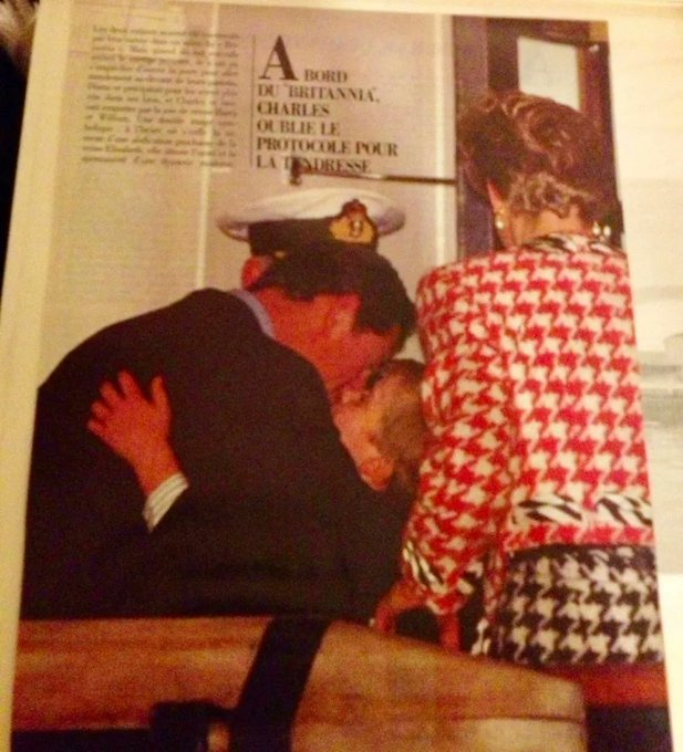 【来自投稿】1991年戴安娜在不列颠尼亚号上拥抱儿子们的照片传播很广,但要找到查尔斯却很难。然而,他也亲吻儿子们并向儿子们打招呼。