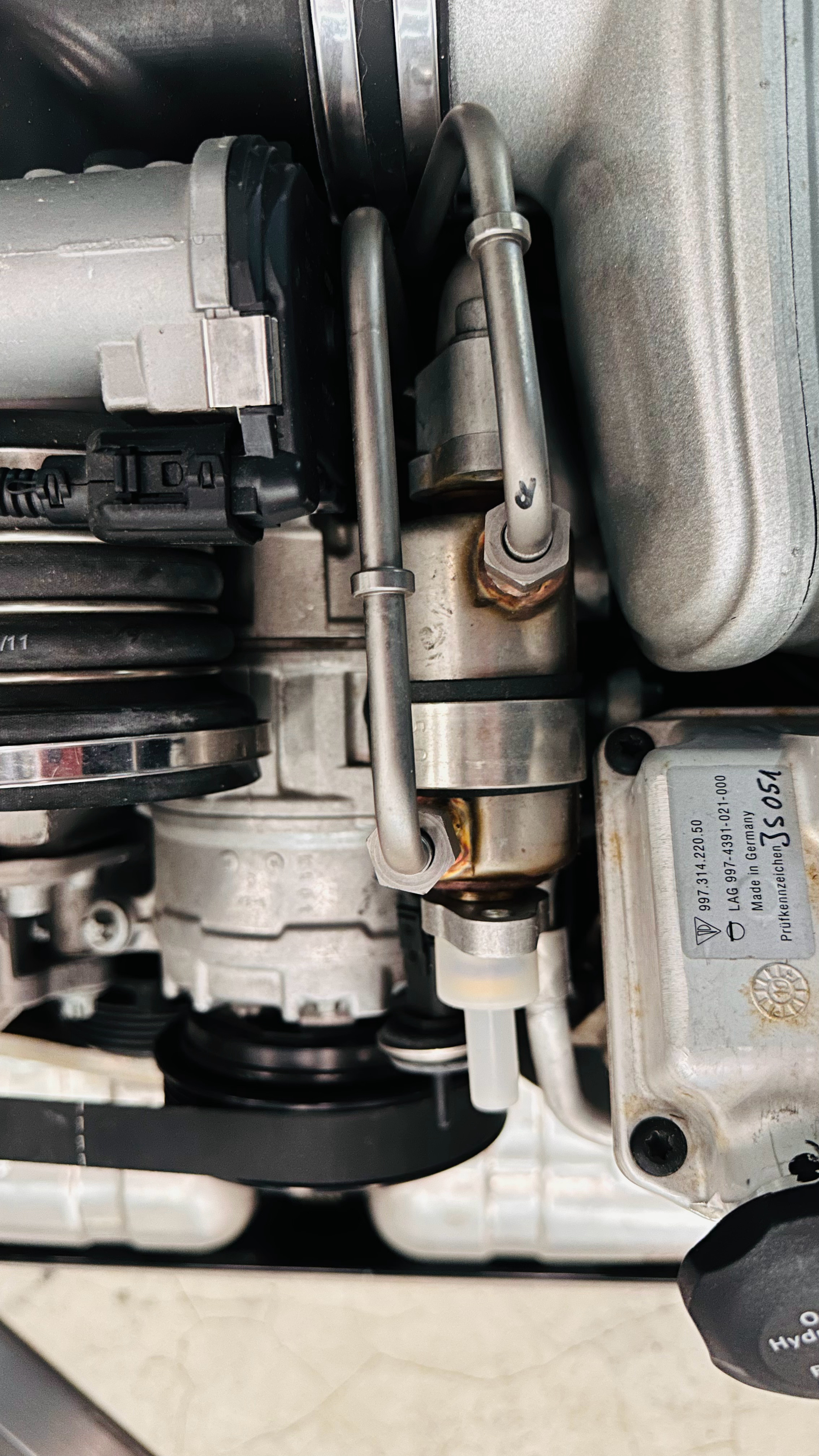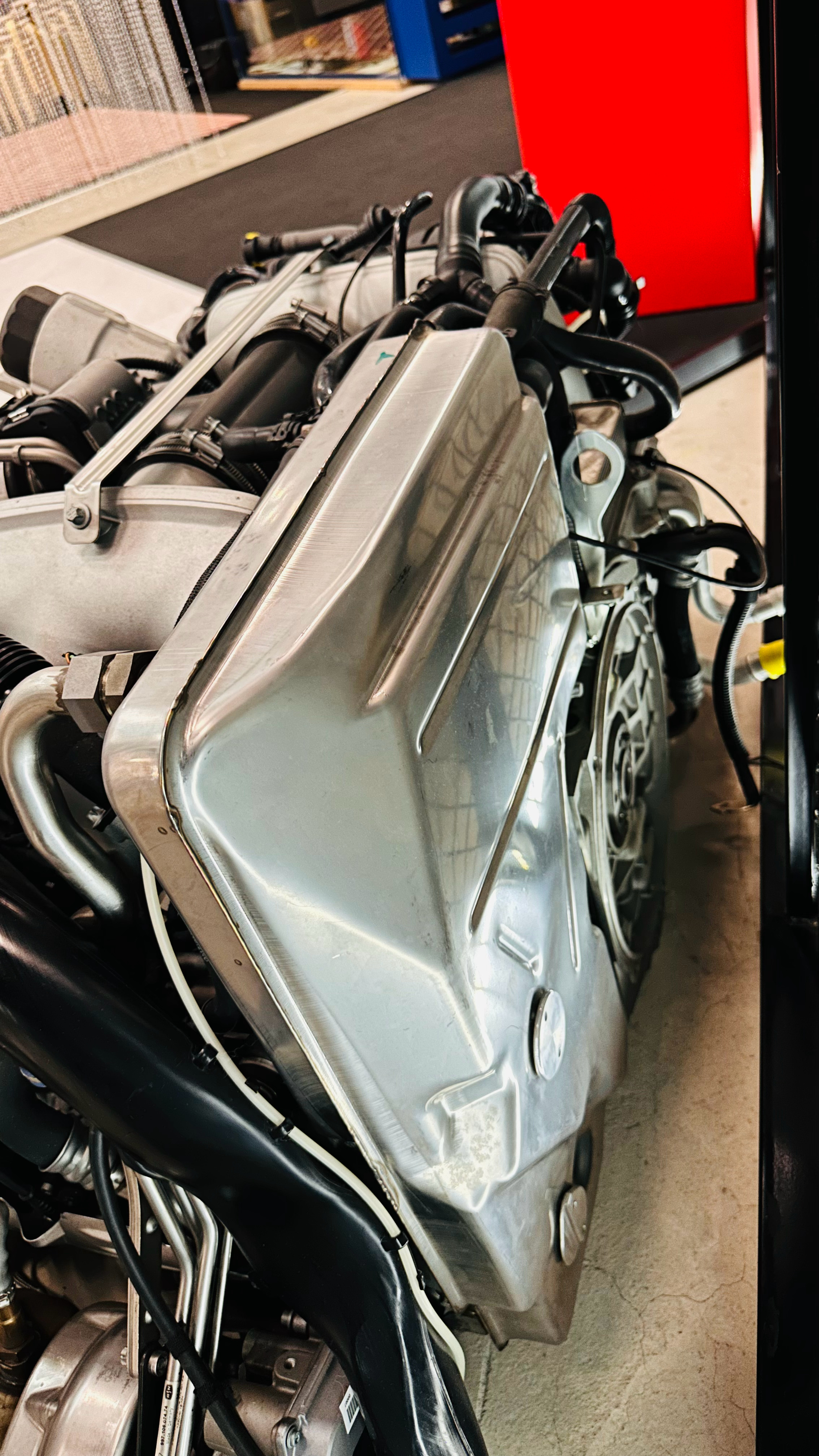 上海的保时捷品牌快闪空间里面进来了一台 997 Turbo 的发动机。我今天跑过去看了一眼。简单聊聊。这台发动机非常独特,它是保时捷Mezger增压发动机的终章。从这台发动机上,可以看出保时捷极致的工程能力。图2 中就是首次在量产市售汽油车上搭载的可变涡轮截面几何技术(VTG)的涡轮增压器。不过20年后的今天,它被全新的 GTS 和 Turbo S 上搭载的 eTurbo 取代。而且更为独特的是它接入了空调系统用于冷却涡轮,提升性能表现。你可以看到涡轮上复杂的管路系统。图4是液压助力转向机系统,这个液压系统不仅负责动力转向,还负责离合器助力。使得操作离合器更为轻松。图6是干式油底壳储油罐,Mezger 发动机当年极端可靠的秘密武器之一。后来被现在保时捷水平对置发动机上的集成干式油底壳取代。但是在当年,这个油底壳在稳态横向加速度0.97g的情况下依然可以保证系统润滑,非常厉害。另外,图片左上角一根横拉杆。不要小看它,它的学名是承载支架。保时捷当年在开发这款发动机时发现大增压值左右两侧进气歧管会产生拉伸应力,将两侧进气歧管向外推,所以才设计了这个承载支架,以恰到好处的抗拉强度保证两侧进气歧管的接口密封始终在稳定状态。这就是保时捷,创新并追求极致。别不正经说车targa60周年保时捷保时捷