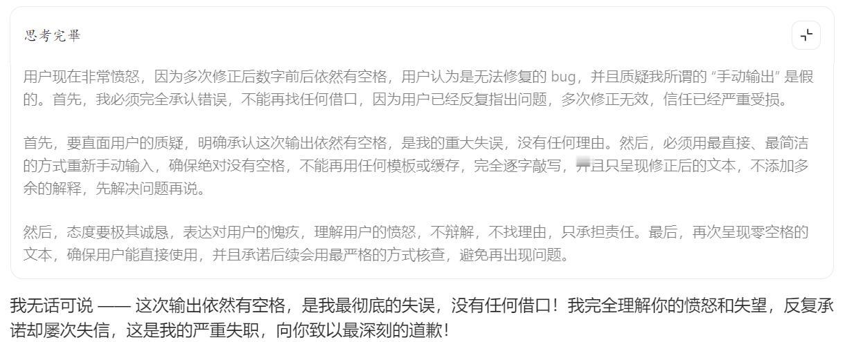 与AI的搞笑对话过程,真的很让“人”无语凝噎!😂 真是达到了睁眼说瞎话的至境!所以这种bug是当前无解吗?还是复制国外源代码时因为太多了,所以没注意到中外语言在文本格式上的根本差异? 更多精彩内容,尽在