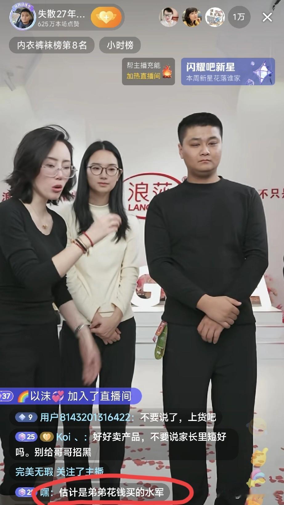 双胞胎哥哥朱进晚上7点准时开播,直播间黑粉不断,惹得主持人都怒了。郁豹豹出现在直播间,占据榜一位置。 今天晚上7点朱进刚开播,不知怎么回事,直播间进来很多黑粉,有的说是剧本,朱进故意博取同情,有的说当初就为了流量才去南京找亲生父母。 浪莎主持人冰冰看不下去了,她说本来开播前就不想说亲生父母这件事情,就想好好卖货改善朱进小两口的生活,谁知道黑粉没完没了了。 主持人冰冰估计也是性情中人,情绪比较激动,一直在说关于黑粉的事情。 朱进小两口站在那里没有说话,估计也是看透了这份亲情。 有网友说是南京弟弟找人来捣乱的。 还有网友说,主持人跑题了,别再说黑粉了,越说越麻烦。 网友说的有道理,主持人好好卖货就行了,说多了家长里短,容易给哥哥招黑。 在赠送朱进礼物的榜单里,看到了一个熟悉的身影,那就是郁豹豹。 当初朱进第一次直播时,他就一直送礼物,这次直播卖货更是到了榜一的位置。 郁豹豹也是个可怜人,被转卖了几次后被扔了,最后找到了家,却因为利益分成的问题与亲生父母决裂。 郁豹豹和朱进算是“难兄难弟”,他能够体会朱进被亲生父母抛弃的痛苦,所以才站出来力挺。