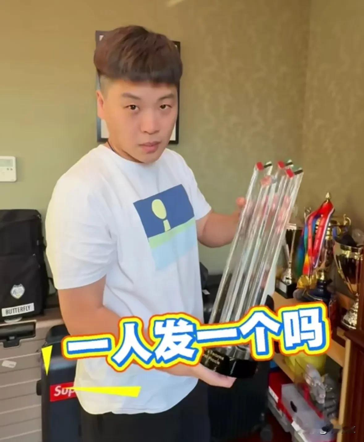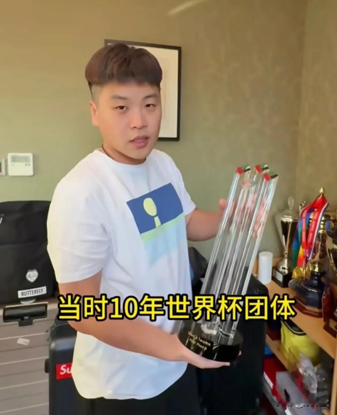 笑死了!郝帅晒出自己的奖杯,有一个10年的世界杯团体奖杯,当时只有一个,别人都不要,给他了! 这别人是马龙、王皓、张继科、许昕! 有网友调侃,他们看你拿个奖杯不容易,他们不差这一个,也是扎心中带着搞笑!