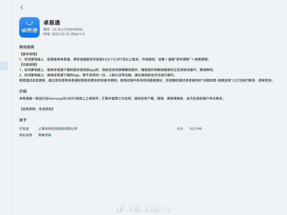 卓易通上架鸿蒙电脑应用尝鲜,属实是没想到,鸿蒙电脑应用生态是通过这种方式来拓展 电脑生态建设短期确实没有什么好的办法,希望更多原生应用快快加入进来HarmonyOS6 鸿蒙越用越香 鸿蒙电脑