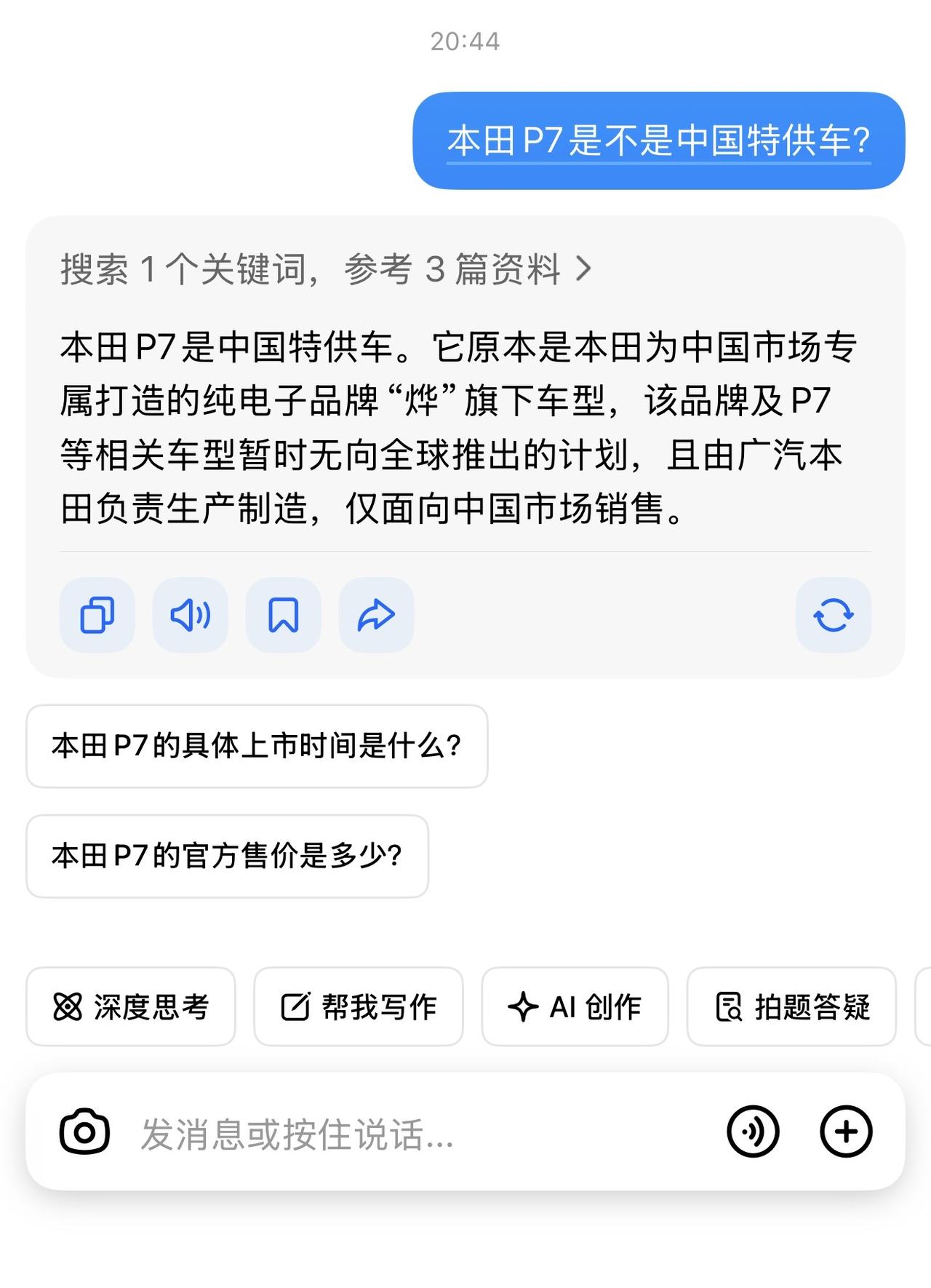 本田P7降到了15W,一看月销才一千多,确实有起色至少比之前月销一百多台好看点,但是估计也远没达到主机厂预期[捂脸] 为啥有着宁德时代90度大电池,265大宽胎,前双臂后五连杆才14.99W的P7还是卖不动呢?因为这车本质上是一台带着本子思维造的中国特供车,确实有亮点,但槽点也不少。 1、只有顶配有座椅通风,只有最低配有物理后视镜。说难听点就是逼着你花钱吃X。 2、90度电池和人家70度电池续航差不多,那这个90度电池的意义在哪里我请问?徒增充电时间吗?确实充电也慢。。 3、后驱车弄了个前充电口,就喜欢和别人反着来是吧 4、车机,特供车车机都造成这样也是没谁了[捂脸R]看看隔壁日产特供车N7,丰田特供车BZ3的车机,不像一个时代的。 据说明年改款会改掉部分槽点,拭目以待吧!