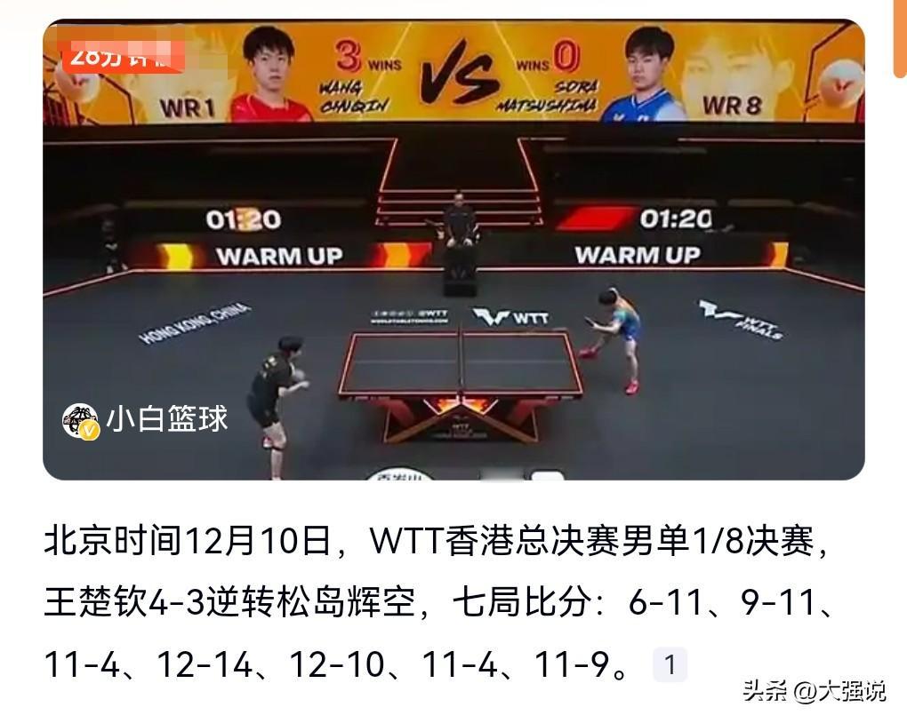 日本乒坛又冒出来一个新星? 王楚钦4-3逆转松岛辉空,这个叫松岛辉空的,我是第1次听说,查了一下,年轻的很才18岁。 这场比赛王楚钦赢的也是非常的惊险啊,能够逆转对面,那也是非常的厉害,这个需要一颗“大心脏”才能完成。 不过这位日本选手的实力也是挺厉害的,竟然能打到这个份上。 乒团时不时就冒出一个新人来,真的是长江后浪推前浪。 我们中国乒坛也要涌现新人才行啊。