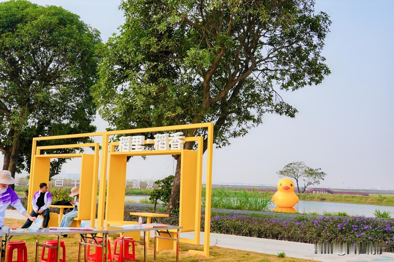 南沙活动太多了,小编又幸运的被抽中,终于在南沙拥有了一块田。 田的位置在大岗智造基地的边边,开车过去也不远,半个钟就到。 名字超好听,叫稻里云海,认领的这一块田有效期十一年,有提供菜苗和工具,有免费自动浇水。不过荒了3个月的话就会被回收。 其实如果不认领田的话,也可以过来这边躺平一下,这哭有露营帐篷可以租,还有个稻田咖啡馆,有番茄采摘,甚至还可以自己体验窑鸡 了。 里面也有各种拍照打卡的设施,待一下午还是挺舒服的,旁边就是洪奇沥水道,天气好的话可以看日落。