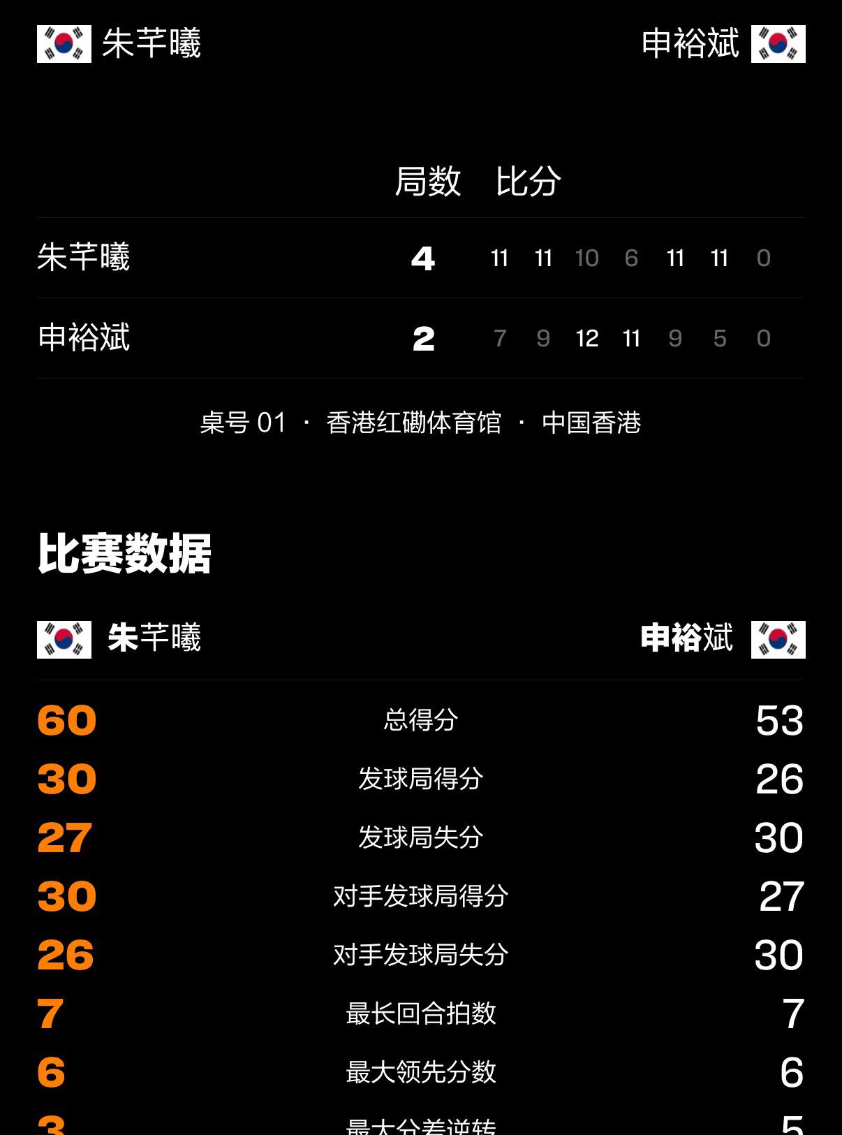 香港总决赛 申裕斌2:4朱芊曦 —带着伤坚持比赛 首轮出局! 申裕斌努力一年换来总决赛门票, 却遭遇一轮游, 还是带伤参加比赛, 运动员都不容易, 这么恶意消耗运动员的身体, 缩短运动员的职业生涯, WTT的比赛频率越来越快, 运动员谁能坚持下去, 运动员最大的敌人就是伤病, 赛事太密集, 真没有恢复时间, 申裕斌都要哭了, 希望大家都能健康完赛, 申裕斌加油, 国乒队员加油! 莫雷加德养精蓄锐厉害啦, 4:1林德晋级男单8强!