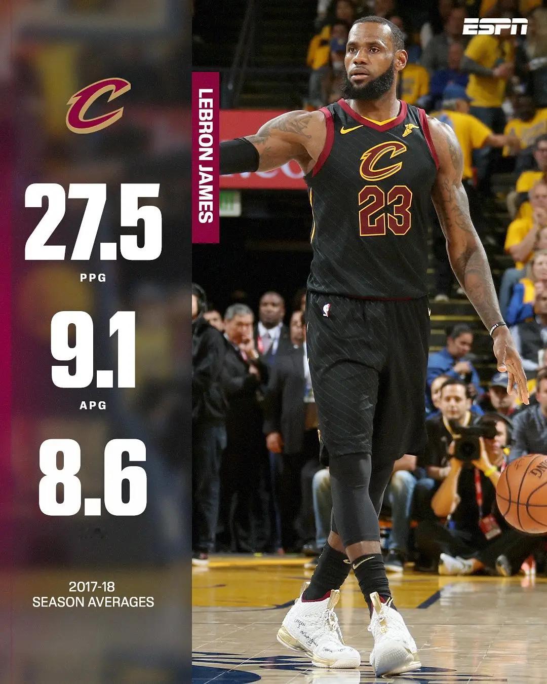 詹姆斯说2017-18赛季是他最巅峰的一年,那个赛季,詹姆斯常规赛场均27.5分8.6篮板9.1助攻1.4抢断,季后赛场均34分9.1篮板9助攻1.4抢断1盖帽,单赛季保持82场常规赛和季后赛的全勤。