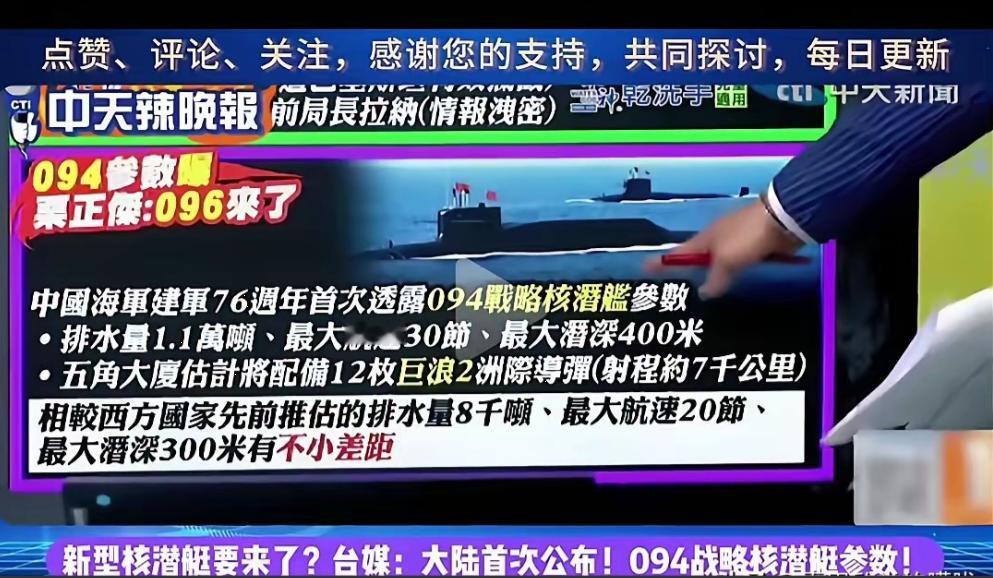 我国首度公开094核潜艇参数,与之前西方估算的排水量8000吨,航速20节,最大下潜深度300米参数有不小的差距。 一句话:西方估的“8000吨小艇”,被我们1.1万吨的“大洋黑洞”当场打脸! 1.1 万吨的排水量可不是小数目,比西方估算的 8000 吨足足多了 3000 吨,这差距相当于在他们认定的 “小艇” 基础上,又硬生生加了一艘小型护卫舰的重量。别小看这 3000 吨,对核潜艇来说,排水量越大意味着能装更多燃料、更多武器,续航能力和威慑力直接翻倍。 西方之前总觉得中国造不出万吨级战略核潜艇,觉得咱们的工业基础和材料技术跟不上,可事实是,094 不仅达到了 1.1 万吨,还能搭载 12 枚巨浪系列潜射洲际导弹。 就拿最新的巨浪 - 3 来说,射程超过 1.2 万公里,从咱们的南海海域发射,就能直接覆盖美国本土大部分地区,这可不是 “8000 吨小艇” 能扛得住的配置。 要知道,美国最先进的俄亥俄级核潜艇排水量近 1.9 万吨,咱们的 094 虽然略小,但已经稳稳跻身世界顶尖战略核潜艇行列,完全打破了西方 “中国核潜艇吨位不足、威慑有限” 的谬论。 再说说航速和下潜深度,西方估的 20 节航速,放在潜艇里只能算 “慢跑”,而咱们 094 的实际航速能到 30 节,这意味着它能更快地抢占发射阵位,也能更灵活地摆脱敌方反潜力量的追踪。 30 节是什么概念?相当于陆地上每小时 55 公里的速度,在水下这么大的钢铁巨兽能跑这么快,背后是咱们自主研发的核反应堆技术的突破。 下潜深度更能说明问题,400 米的深度比西方估算的 300 米多了 100 米,别小看这 100 米,水下每深一米,水压就大一分,对潜艇的壳体材料、焊接技术都是巨大考验,更重要的是,这个深度能有效躲避敌方反潜声呐的探测,让潜艇的隐蔽性大大提升。 之前西方还嘲笑咱们的潜艇 “噪音大,一出海就被发现”,可 094 通过改进推进系统、优化艇体设计,把噪音降到了海洋背景噪音水平以下,成为真正的 “大洋黑洞”—— 美国的反潜巡逻机在附近飞过,都未必能捕捉到它的信号,这就是为什么 2021 年 11 月,094 在美军 “海神” 反潜机眼皮子底下穿越台湾海峡,对方愣是没敢轻举妄动。 更让西方打脸的是,094 早就不是停留在纸面上的装备,而是实实在在具备实战能力的战略重器。2018 年 4 月 12 日,南海海域大阅兵,094 核潜艇首次公开亮相,庞大的艇体和独特的外形让全世界看清了它的真面目,当时就有西方媒体悄悄修改了之前的估算报告。 2024 年 6 月,澎湖渔民在台湾海峡亲眼见到 094 上浮航行,还有军舰护航,岛内军事专家辨认后都承认,这艘潜艇的规模和配置远超西方之前的判断。 最有说服力的是,2025 年 3 月,美国战略司令部正式发布评估报告,承认中国 6 艘 094 核潜艇构成了 “首款真正可靠的海基核威慑力量”,这可是西方军事权威机构实打实的认可,相当于他们自己打了自己之前的脸。 要知道,美国之前一直贬低中国海基核力量,说咱们的潜艇 “打不远、藏不住”,可巨浪 - 3 导弹 1.2 万公里的射程,让 094 不用走出南海就能实现全球打击,彻底破解了西方所谓的 “地理短板” 论调。 西方之所以会犯这么低级的错误,核心就是低估了中国军工的自主创新能力。他们总抱着老眼光看中国,觉得咱们只会 “复制模仿”,却不知道这些年咱们在核心技术上早就实现了弯道超车。 就像之前西方说咱们的歼 - 20 战斗机依赖俄制发动机,结果咱们的涡扇 - 15 发动机批量列装,推力和寿命都远超俄制型号;说咱们造不出万吨大驱,055 型驱逐舰直接排水量突破 1.3 万吨,垂直发射单元达 112 个,性能比肩世界一流。 094 的研发也是一样,从艇体材料到核反应堆,从静音技术到潜射导弹,全是咱们自主研发的核心技术,没有走依赖别人的老路。 西方被中俄军事合作的 “烟幕效应” 迷惑,以为中国军工还停留在 “引进吸收” 阶段,却没看到咱们已经建成了完整的军工体系,钢铁产量占世界 44%,铝材占 65%,还有自主的半导体供应链,这些基础实力支撑着咱们造出 1.1 万吨的核潜艇,一点都不奇怪。 现在再看西方当初的 8000 吨估算,简直就是个笑话。他们既不懂中国军工 “低调研发、厚积薄发” 的习惯,也不懂中国保卫国家主权的决心和实力。 094 核潜艇的公开参数,不仅是一组数字的公布,更是国家实力的宣言 —— 咱们再也不是那个需要看别人脸色的国家,而是能自主造出顶尖战略武器的军事强国。 未来,随着更多先进装备的亮相,西方还会不断被 “打脸”,而这一次次的 “打脸”,正是中国走向强大的最好证明。