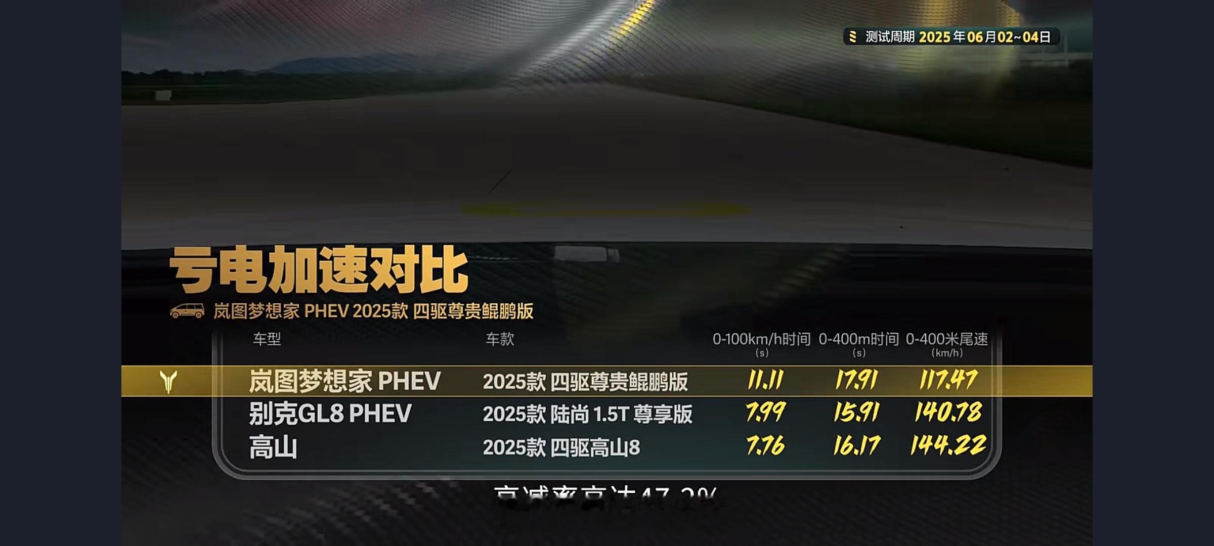11.11-5.87=5.24,这百公里加速的馈电衰减率堪比增程车了。超车和穿梭时的感受完全不一样,这种判若两车的体验感真的能适应吗 ?