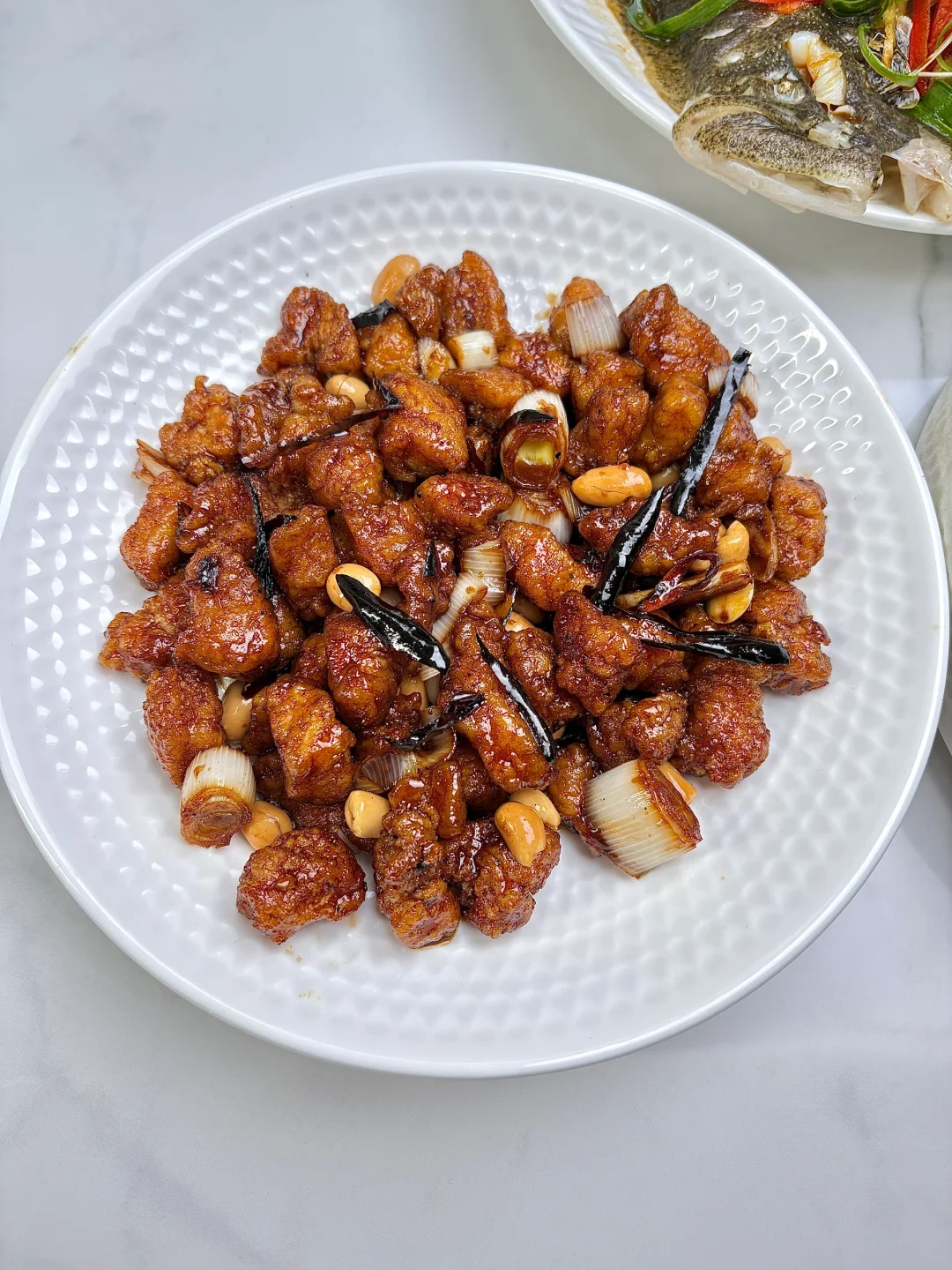 今天晚餐长这样 今日菜单: 宫保鸡丁 清蒸多宝鱼 酸辣土豆丝