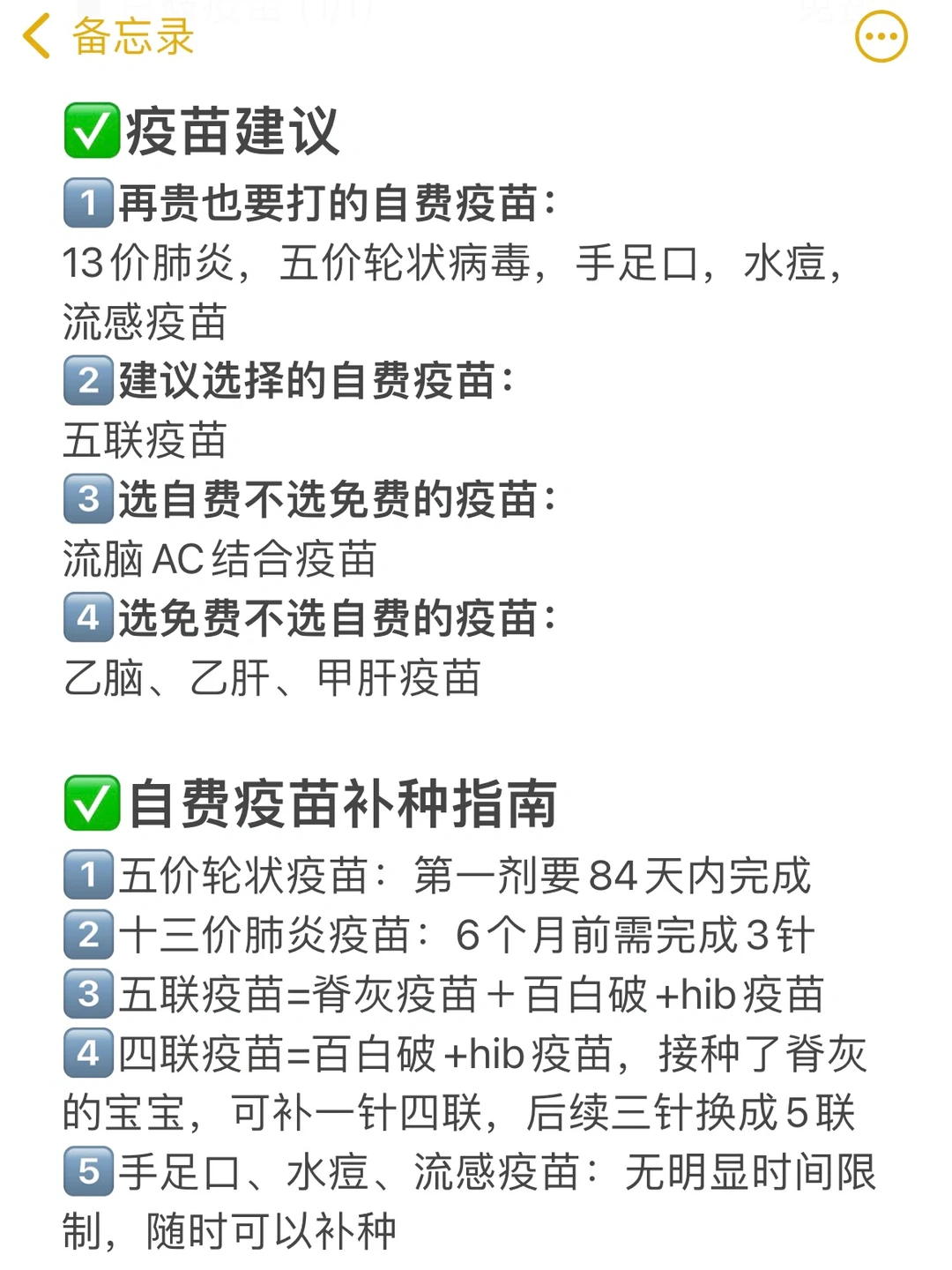 ✅二类疫苗:自费疫苗,自愿选择是否打,是对一类疫苗的补充,像肺炎疫苗、手足口疫苗、流感疫苗等预防宝宝易得疾病的疫苗都是自费的。只要经济条件允许,建议打。