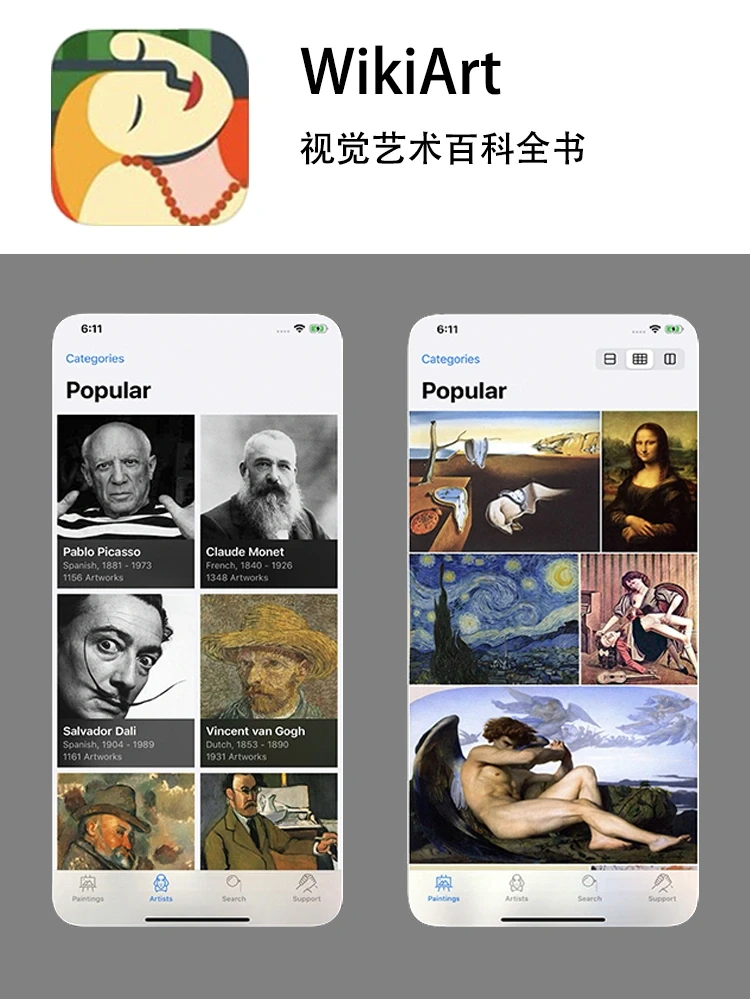收录了4000多件全球最顶级的艺术画作,包括梵高、莫奈、毕加索等艺术大师的作品,而且均是高清图,可免费阅览和下载。它的首要功能是每日推送,每天推送一幅画作,并附有详细的作品介绍和解读,让你充分领略世界名画背后的深意。