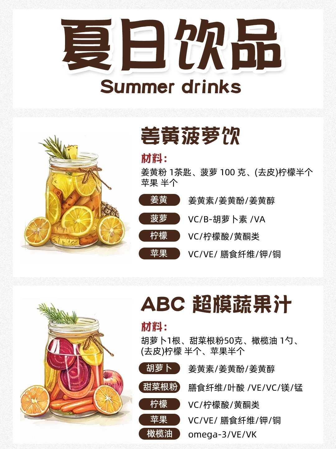 夏天来了 最近真的是热的冒泡🫧 快来试试这款亲测好喝的果蔬汁 清爽好喝,仙女们都爱喝 2分钟轻松搞定,一杯满足你身体所需的VC、蛋白质 ✅姜黄菠萝饮 ✅ABC超模蔬果汁 ✅胡萝卜苹果汁 ✅西芹羽衣甘蓝汁 ✅花青素饮 ✅玉米南瓜牛奶