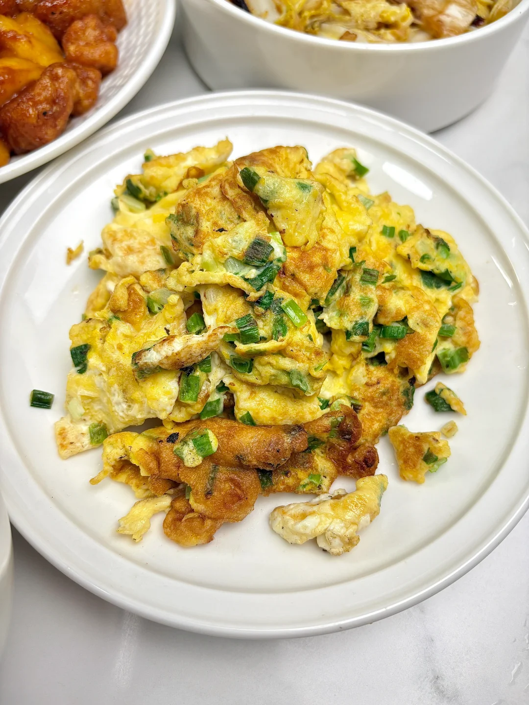 今天晚餐长这样 今日菜单: 菠萝咕咾肉 酸辣白菜 小葱煎鸡蛋