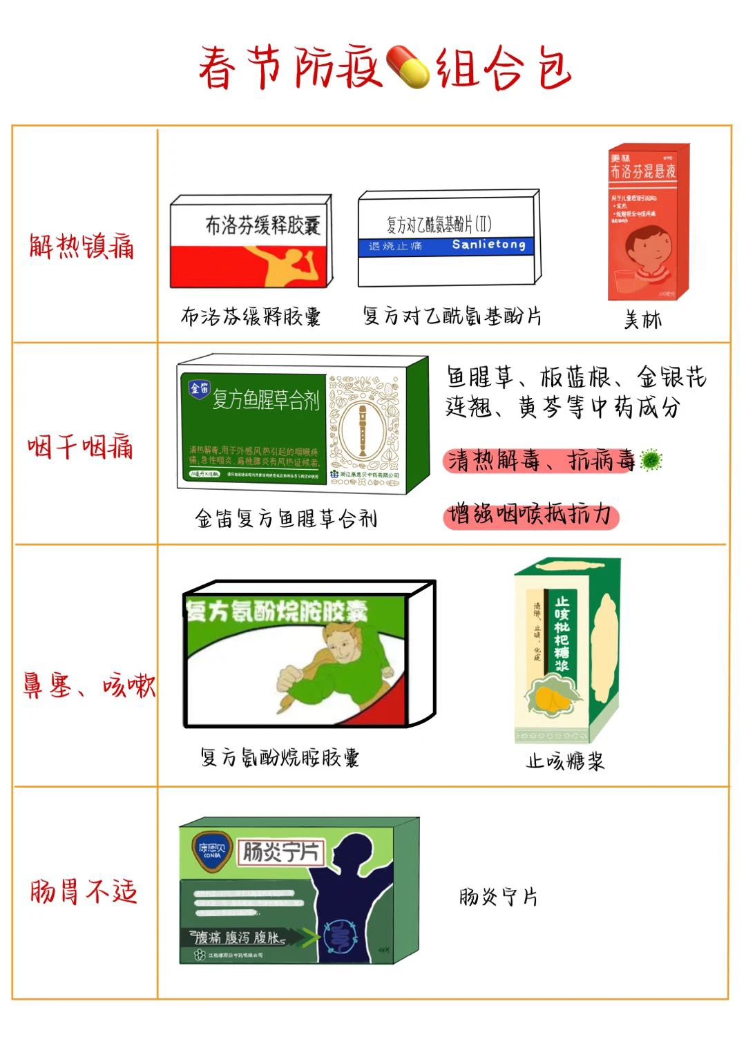 🍀解热🤒️镇痛:布洛芬缓释胶囊、复方对乙酰氨基酚片、美林退烧💊。