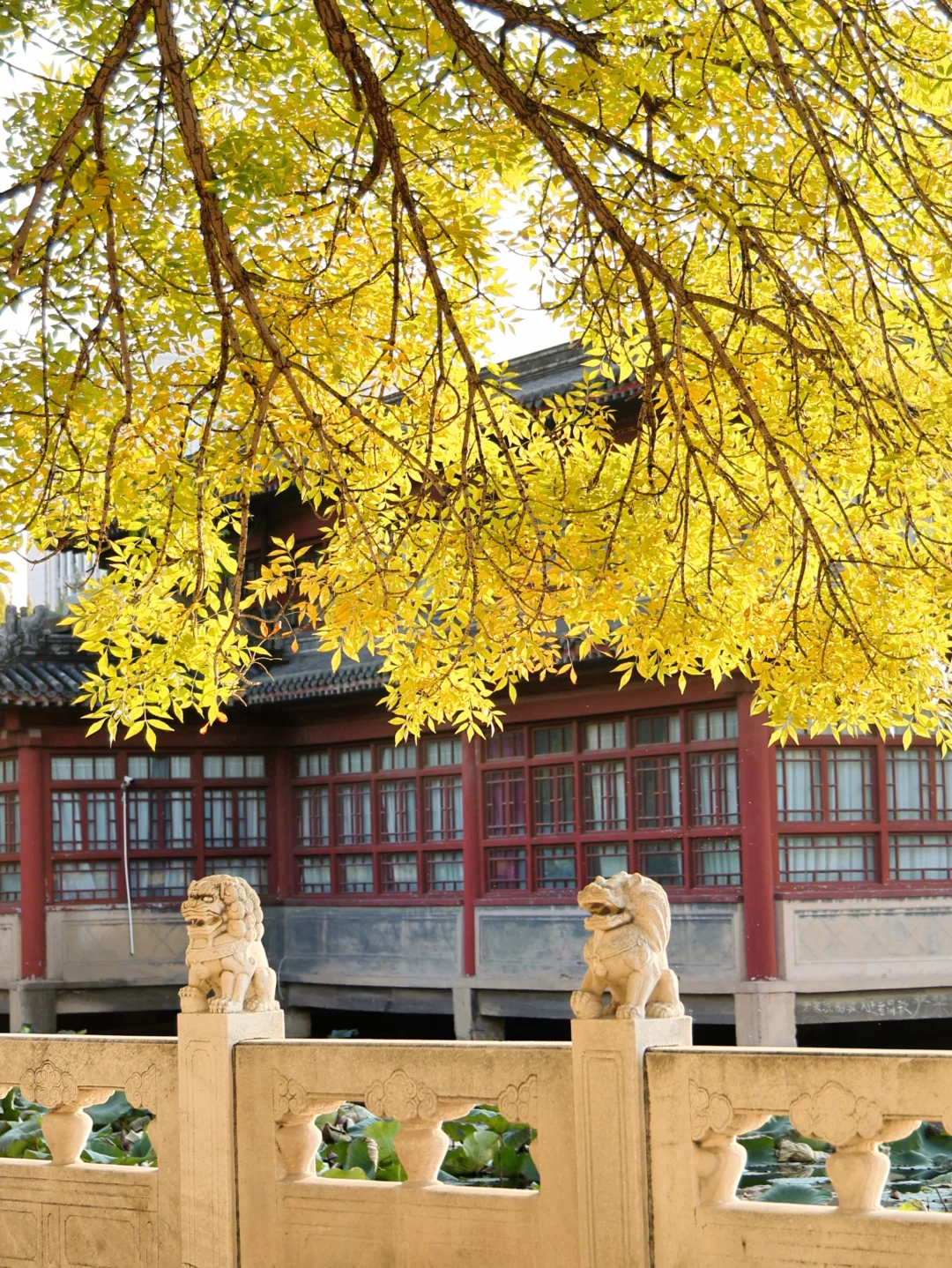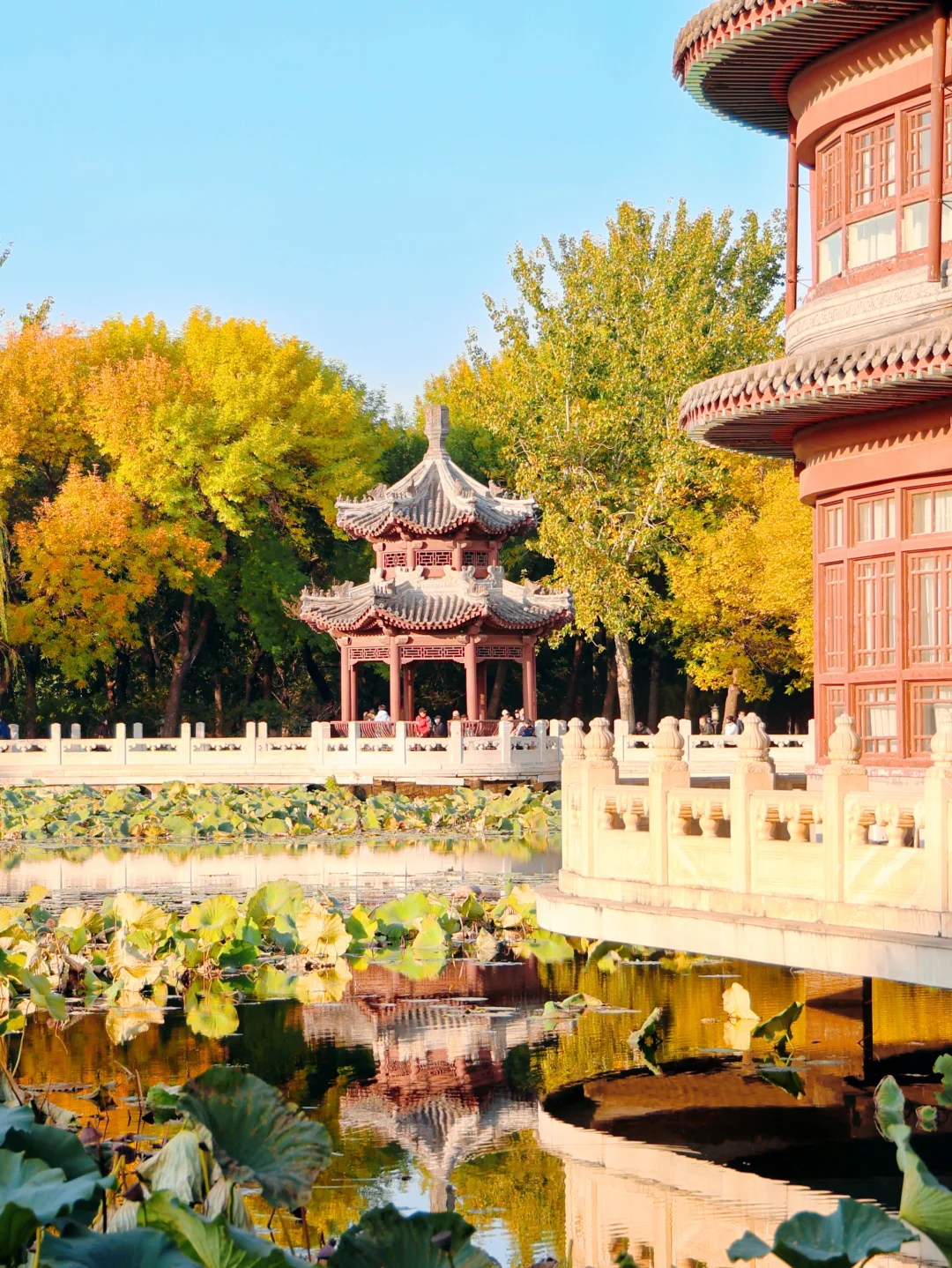 天津赏秋系列,这一站📍北宁公园 10.24秋色加载90%太美了 午后的阳光洒在金黄的白蜡上美成油画 📷人像拍照机位 🔵月季园,站在海棠门前 🔵宏观楼前连廊,框架构图,用廊柱包芦苇 ✅游玩tips: 🔵下午14-15点半的光线柔和,自带金光滤镜 🔵西门离地铁近,南门离公交站近 🔵附近商场停车4/h