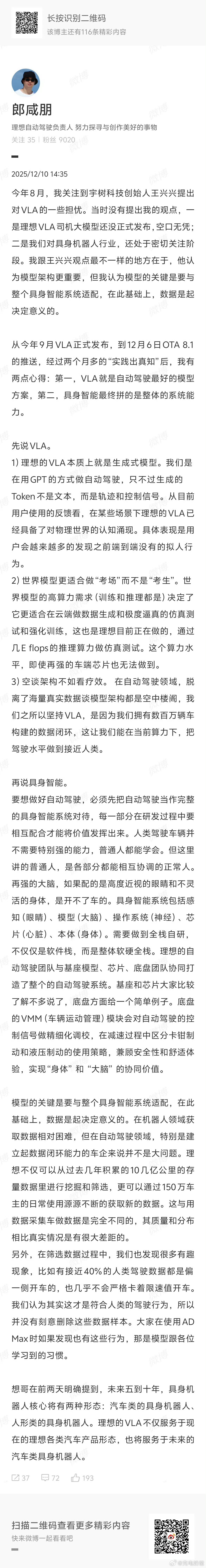 理想高管回应王兴兴质疑从NPN到NOA然后VLM现在呢叫VLA,还夹杂着1
