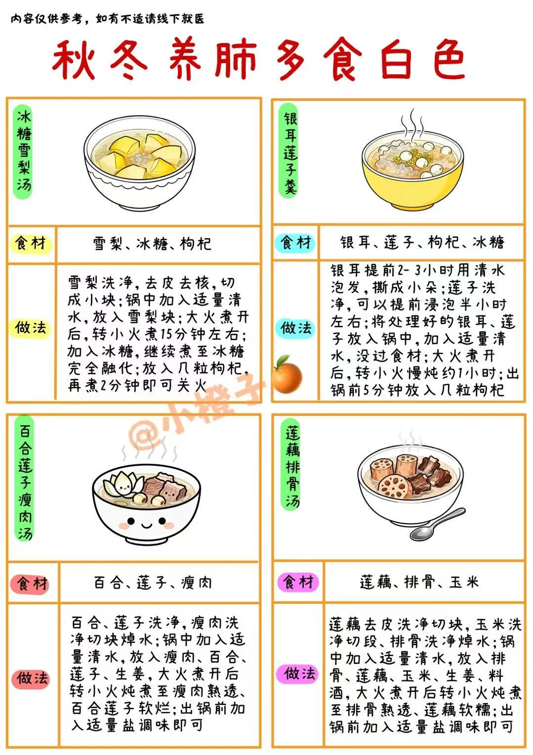 另外小橙子🍊还总结了养肺🫁小技巧和养肺食谱,详情请查看图四图五哦!
