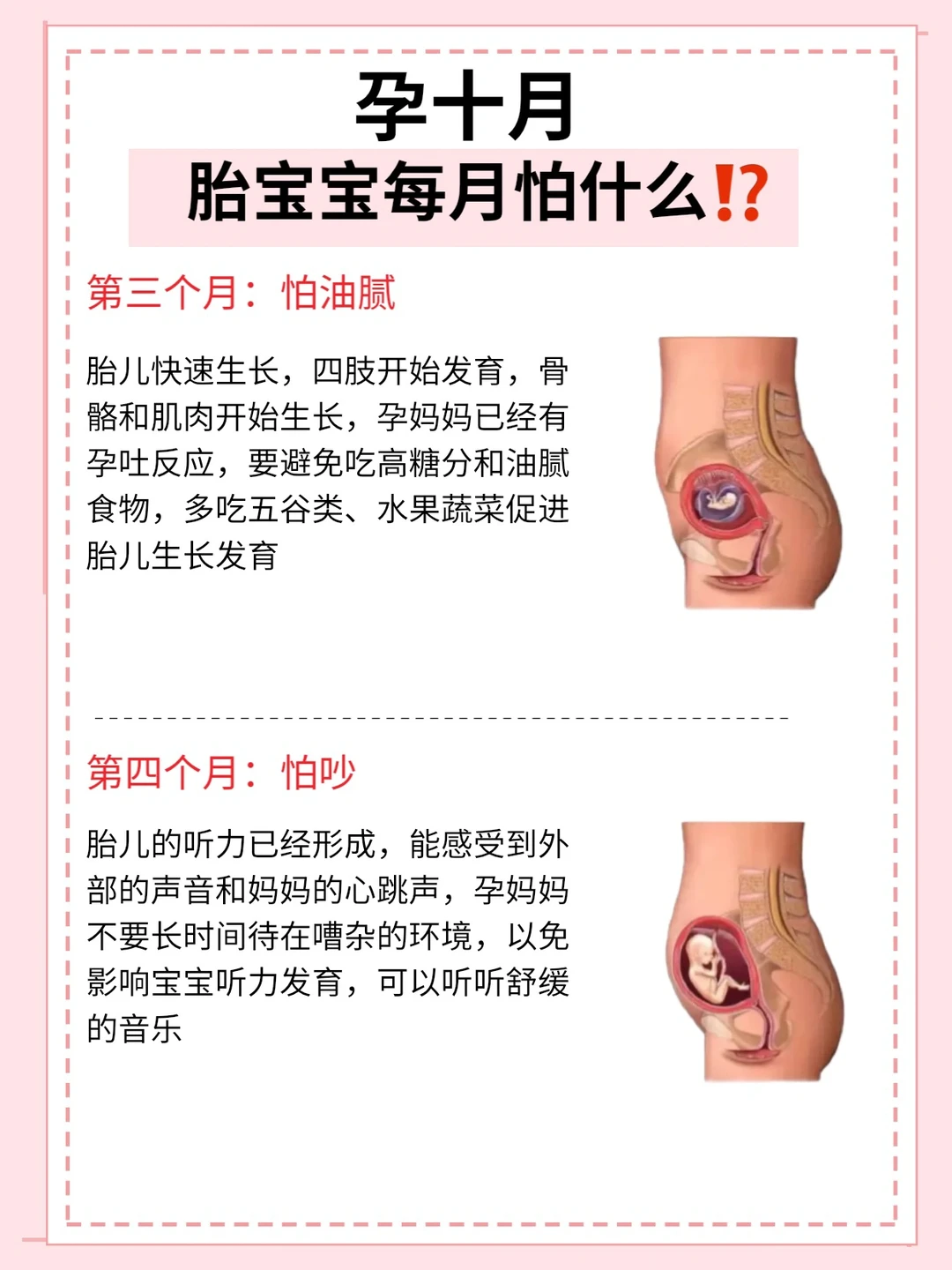 对于每个新手妈妈来说从怀孕到分娩都是比较幸苦的,但是也是非常幸福的,然而胎儿这十个月会在妈妈肚子里不断的变化,胎宝宝每个月在腹中所怕的东西都是不同的,准妈妈们也要格外注意,那么胎宝宝每个月到底怕什么尼❓