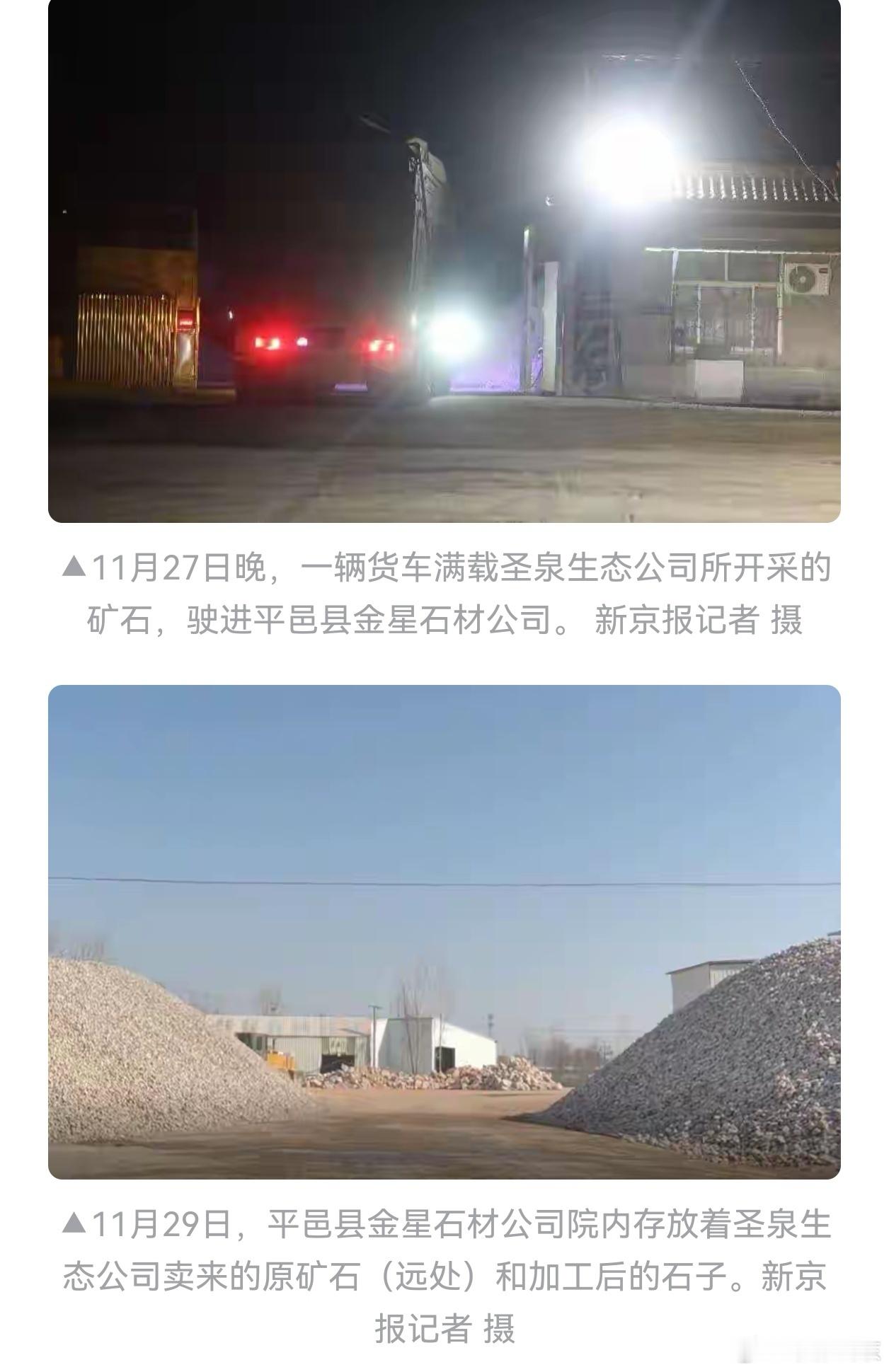 山东4500万养牛场成挖矿基地?立项两年牛影无踪,每日数十车矿石去哪了山东泗水一个投资4500万元的种牛繁育项目,立项两年多连一头牛的影子都没见着,山脚下却天天热闹——数十辆货车满载矿石呼啸而出,被挖开的山体裸露出大片碎石,货车驶过,碎石便簌簌往下掉,在山腰拖出一条两米深的沟。11月下旬,记者在泗水县泉林镇安久村调查发现,圣泉(山东)生态科技有限公司的项目展示牌立于山脚下,显示项目占地57296.46平方米,分两期建设,存栏母牛1500头,为智慧养殖场,效果图呈现整齐养殖区。当地村民称:“至今没建一间牛舍,没养一头牛。”项目区仅有两层简易板房构成的“项目部”,门前砂石路安装地磅。项目区东侧山体已挖开,裸露大片碎石;西侧处于施工中,形成一条深约两米、宽约八米的深沟,沿山腰延伸。每天清晨7时30分,鲁Q牌照货车在327国道加油站集结。它们是“前四后八”车型,结队沿山腰砂石路进项目区。11月26日至29日,记者连续四天观察。这些货车车厢都经过加高改装,每次6至7辆一同装货。下午3时30分左右,还有另一批车辆进场。按每车60吨、每日20辆算,一天运走约1200吨矿石。知情人士介绍,项目区自去年下半年起开采高钙矿石外运,今年雨季停工三个月,9月27日恢复采矿。矿石以每吨40元价格销往临沂市平邑县。11月27日晚,记者跟踪货车发现,车辆驶入平邑县通圣路金星石材公司卸货,该公司院内堆放着从泗水县运来的原石。金星石材公司老板表示,从泗水运来的原石碳酸钙含量在53.5个点以上,可现场化验检测。加工后的石子按规格不同,每吨售价44元至70元,石粉每吨28元,公司每日最少加工1500吨,加工后的石子销往山东聊城的电厂、钢厂和商混水泥站。11月28日,泉林镇自然资源和规划所所长卜祥军称,圣泉生态公司此前因盗采矿石被处理过,近期未发现外运售卖矿石情况。12月3日,泗水县自然资源和规划局分管矿管工作的徐康表示,该公司未取得采矿许可证,11月26日对项目区巡查未发现盗挖矿石外卖情况,将安排执法人员对辖区内多个项目进行检查。12月3日,知情人士透露,泗水县自然资源和规划局执法人员已在圣泉生态公司项目现场扣留一台铲车。泗水县仲家庄村北羊肚菌项目区、南贺庄村南土地复耕项目等开挖矿石的地点,也被责令停工并回填矿石。泗水县人民政府2023年4月发布的《泗水县矿产资源总体规划(2021—2025年)》显示,2020年泗水县已发现矿产26种,查明资源储量的有13种,非金属矿产以石灰岩、花岗岩为主,水泥用灰岩保有资源量达3.52亿吨。中国裁判文书网显示,2018年至2022年,泗水县人民法院共判决非法采矿罪案例12起。2024年8月,自然资源部通报的80个违法违规重大典型问题中,11起涉及非法采矿,包含以建设养殖场为名非法采矿的实例。来源:新京报