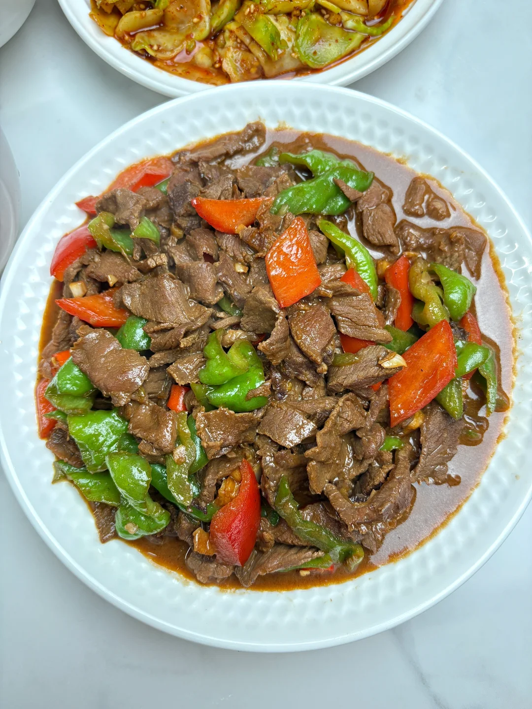 今天晚餐长这样 今日菜单: 凉拌儿菜 青椒炒牛肉
