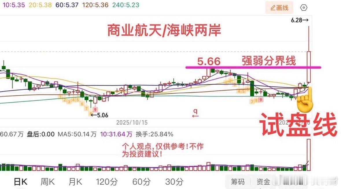 2025.12.10周三收评: 探底回升,本质不变,等待变盘! 大盘观点:指数的看点仍然是均线的得失,今天走了个探底回升,回到了5/10日线附近,能收回去说明多空还是平衡状态,均线粘合就不会有变化,耐心等待变盘选择方向,当前20日线还会继续向下,对指数继续压制,但如果能够保持均线不破,尤其是下周,20日线的压力会慢慢减弱,前提条件就是均线不能有效跌破,如果能做到这一点,问题就不大,那么下周开始对多头就比较有利。 策略上,震荡盘指数并不是特别重要,关键还是个股为主,跟踪有资金介入的方向。 比如《试盘线》👉什么是试盘线? (上引线+中大阳+底部放大量+突破均线),如图所示。 在第二天回踩的低点画一条线或左边支撑作为强弱参考,回踩不破即为强,跌破则弱。 个人观点,仅供参考!不作为投资建议!