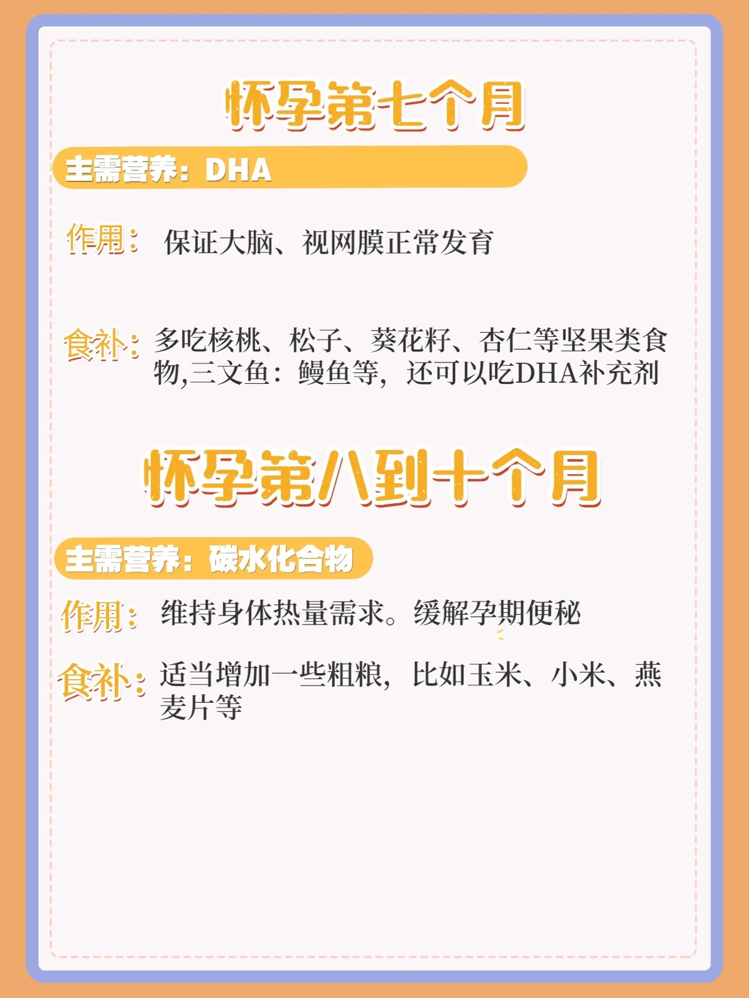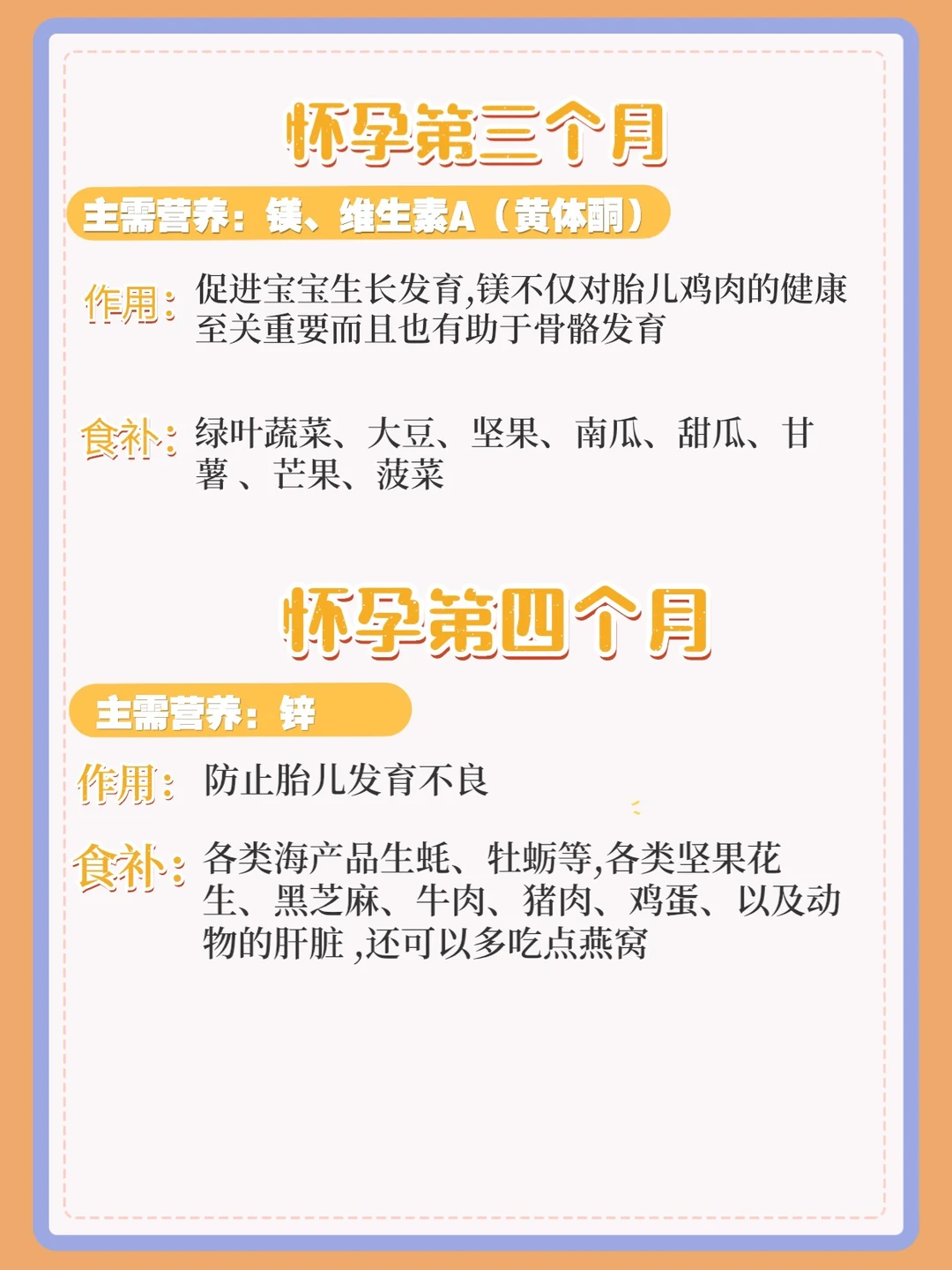 大多数新手妈妈对孕期知识并不熟悉,常常会陷入焦虑。 我作为“过来人” 😊整理了一些孕早期、孕中期和孕晚期的饮食营养 避免新手妈妈们走弯路。 1️⃣叶酸是孕晚期最需要补充的营养,应该提前开始补充,一直口服到怀孕后3个月。 2️⃣铁、钙是日常生活中较重要的微量元素,怀孕后,孕妇生理需要量增加,同时宝宝的生长发育也需要大量的铁和钙。 3️⃣维生素、优质蛋白也是重要的营养素。孕妈妈应该合理、均衡饮食、营养,要注意饮食低糖、低脂。