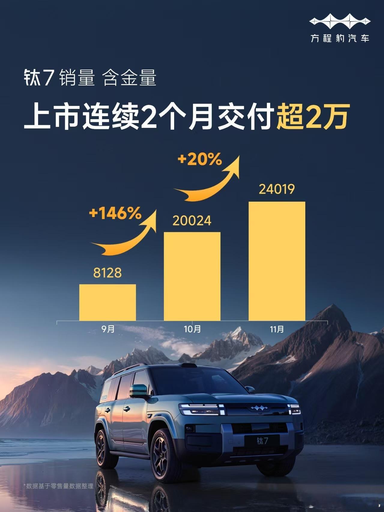 钛 7 真的牛,绝对是 2025年现象级的爆款车型上市第二个月就破两万,第三个月还能+20%,上个月高居混动车型第二(第一也是自家人)同时也是整个方壳子细分市场的销冠,据说迪子给钛 7 新增了很多很多的产能,新时代的爆款密码算是掌握了钛7