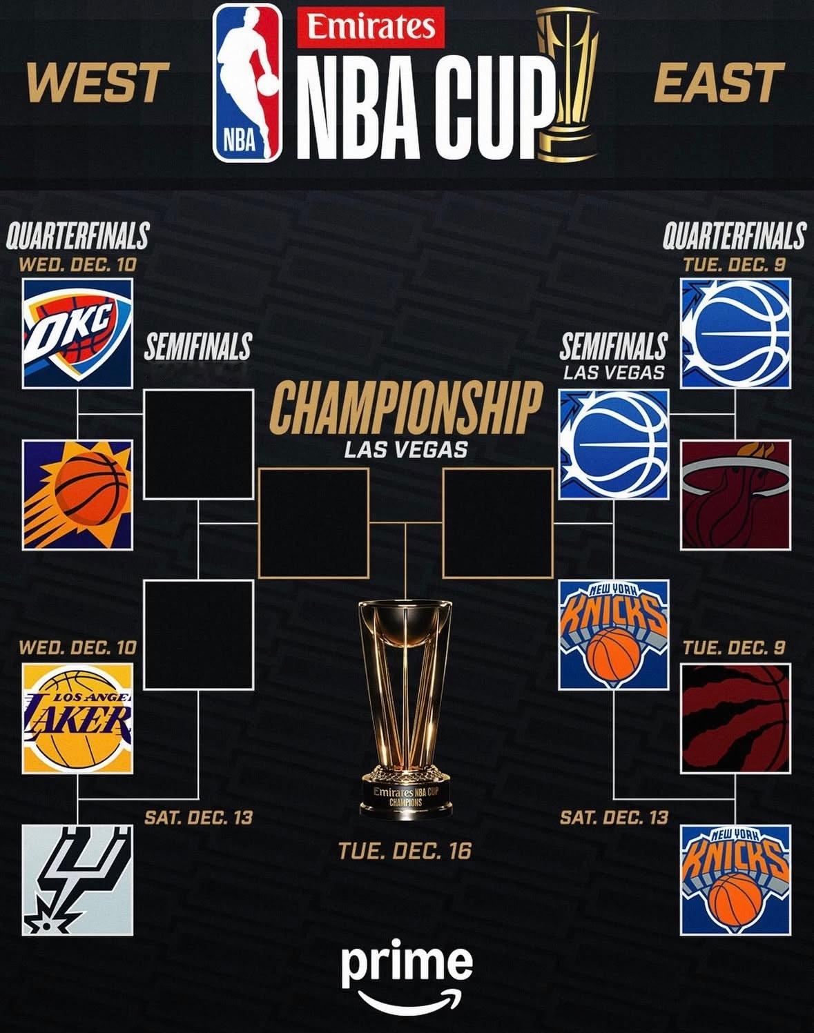 NBA杯对阵出炉,湖人打马刺。湖人