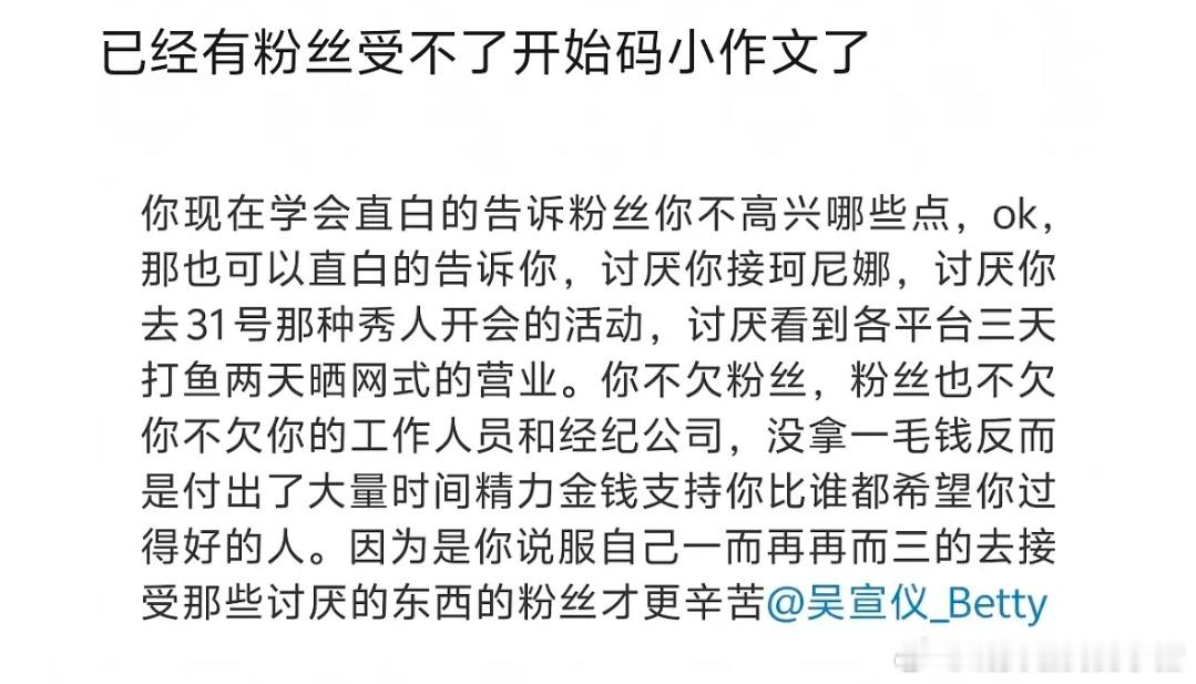 吴宣仪这算是训粉吗?不喜欢粉丝说教,不喜欢怨气太重,决定取消行程图,粉丝已经开始写小作文脱粉了