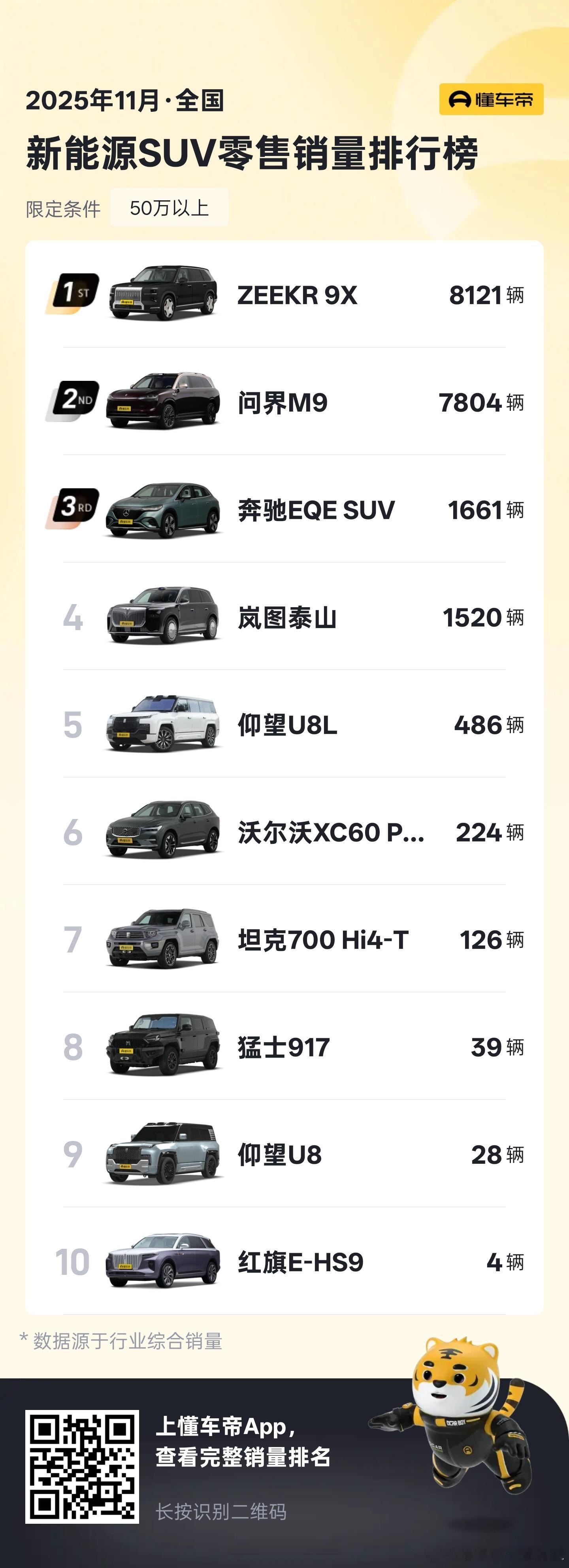 11月的零售销量出炉,极氪9x月销量8121台,是50万以上新能源suv销量的第一名,同时也是50以上新能源车型销量第二名9x作为今年极氪最重要的车型,外形和设计真的得到很多用户的认可。之前也跟销售聊过,很多老板确实对9x非常满意。这个销量对于极氪来说真的是一个很重要的强心针。对于极氪的品牌向上真的是重大利好。极氪加油极氪