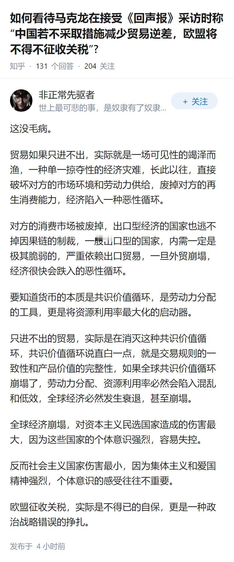 如何看待马克龙在接受《回声报》采访时称“中国若不采取措施减少贸易逆差,欧盟将不得不征收关税”?