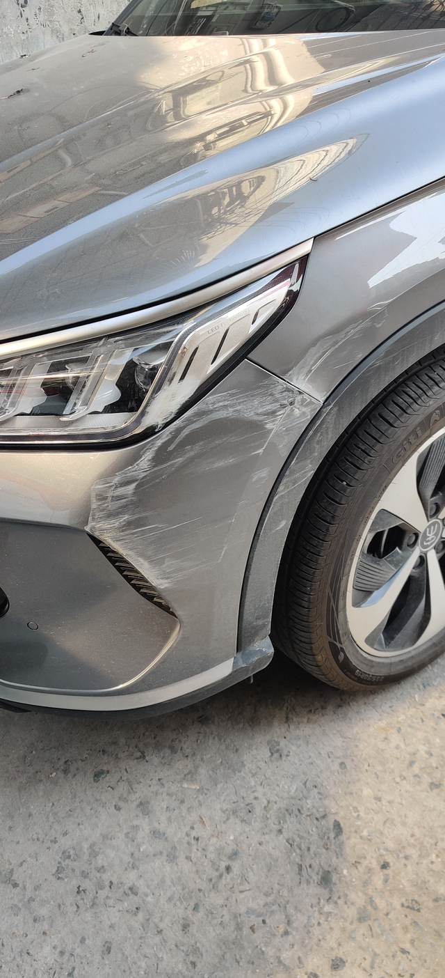 自己修还是报保险 车头不知道啥时候刮了 车灯也挂到一点点 这个如果去外面修大概要多少钱
